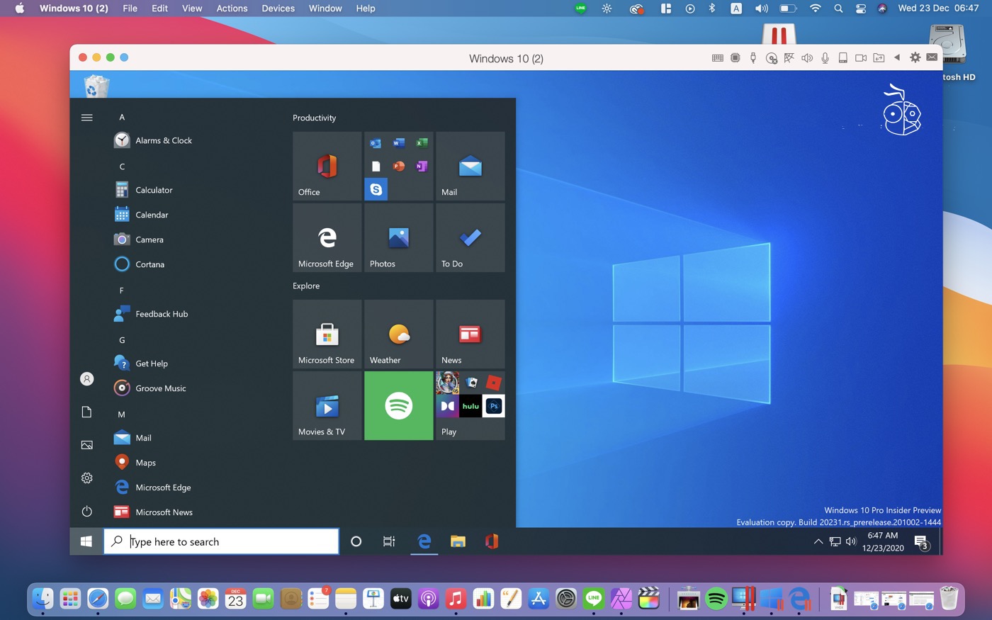 ส่วนระบบ Virtual Machine หรือว่าการระบบปฏิบัติการแบบเสมือนนั้นก็เพิ่งจะเริ่มใช้งานได้ มาเริ่มกันกับ Parallels Desktop เวอร์ชัน 16 ตัวทดสอบนี้รันบน MacBook Pro 13″ รุ่นชิป M1 โดยใช้ Image file ของ Windows 10 on ARM Insider Preview ซึ่งผลการทดสอบก็พบว่ารันใช้งานพื้นฐานได้