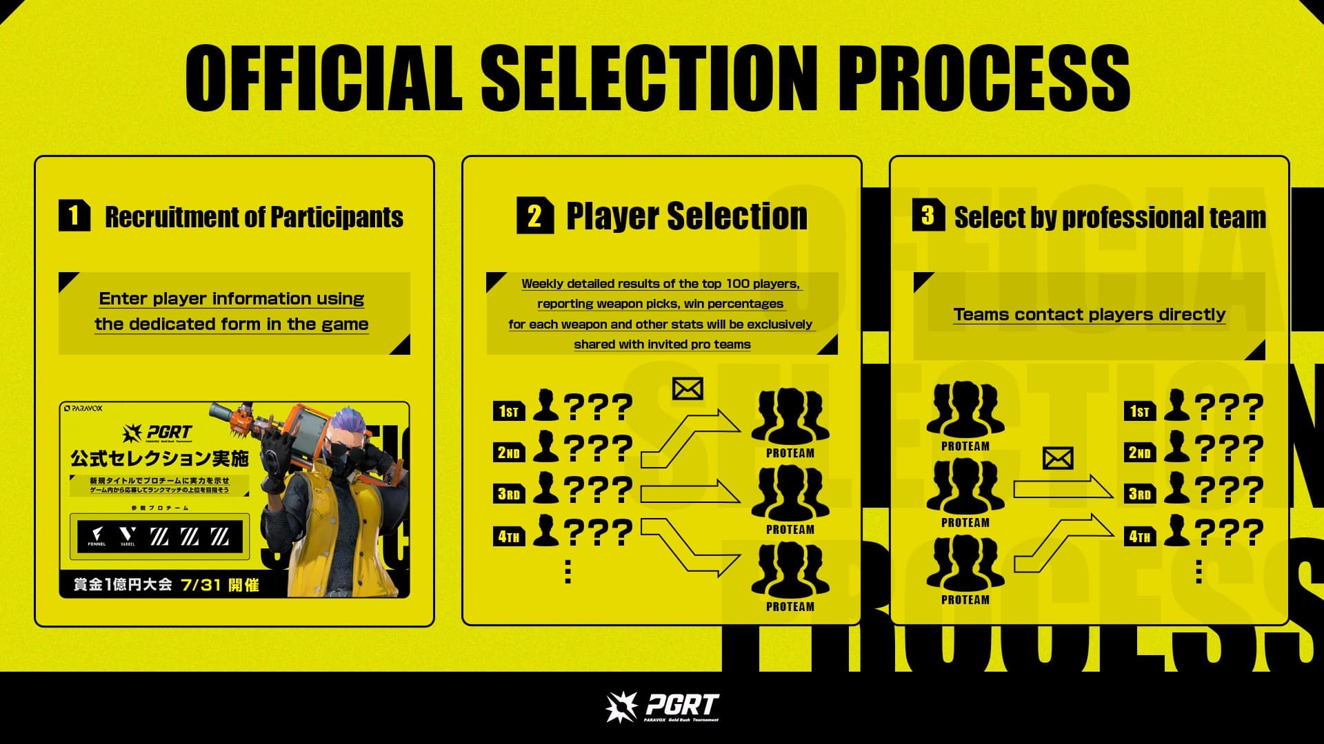 การคัดเลือก official selection หานักกีฬาเพื่อเข้าร่วมการแข่งขัน PARAVOX GOLD RUSH TOURNAMENT โดยจะเป็นการเปิดโอกาสให้ผู้เล่น top 100 จะสามารถเก็บสถิติต่าง ๆ ของตัวเอง เช่น เปอร์เซ็นต์การชนะ รายงานอาวุธต่าง ๆ ที่ใช้ แบบรายสัปดาห์เพื่อให้ทีมต่าง ๆ ได้ทำการเก็บข้อมูลในเกมเพื่อประกอบการตัดสินใจในการเชิญเข้าร่วมทีมแข่งขัน โดยการเข้าร่วมการแข่งขันจะได้สองแบบ ดังนี้