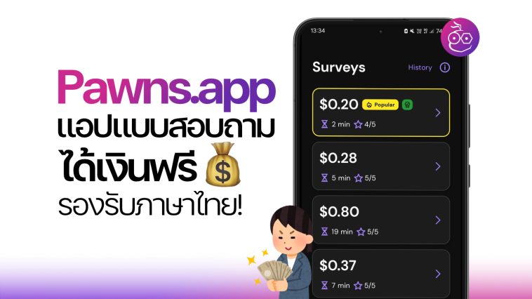 Pawns.app แอปทำแบบสอบถาม ได้เงินฟรี รองรับภาษาไทย!