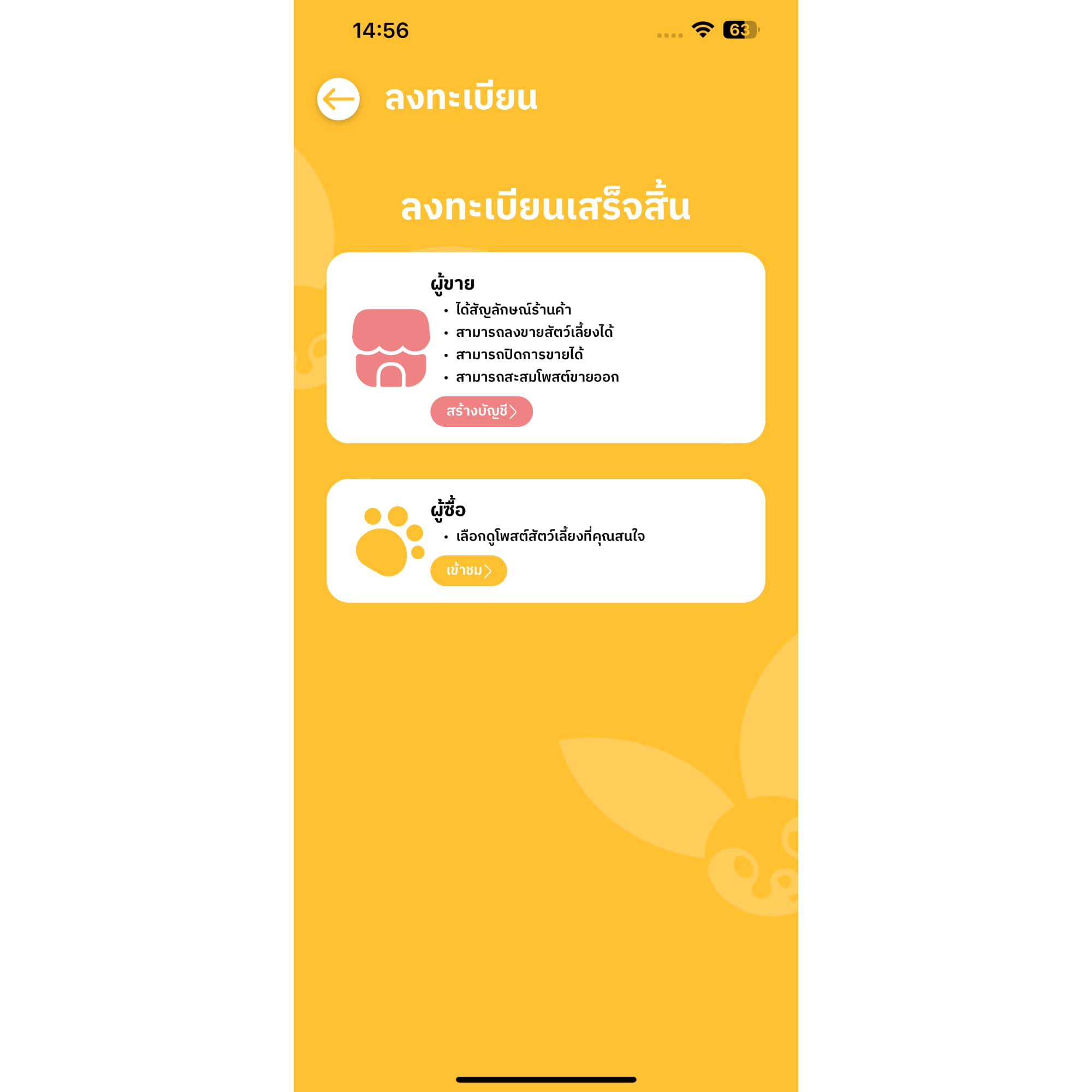 เริ่มลงทะเบียนเพื่อใช้งานก่อนได้เลย หรือว่าจะเลือกไปดูสัตว์เลี้ยงก่อนสมัครก็ได้💞