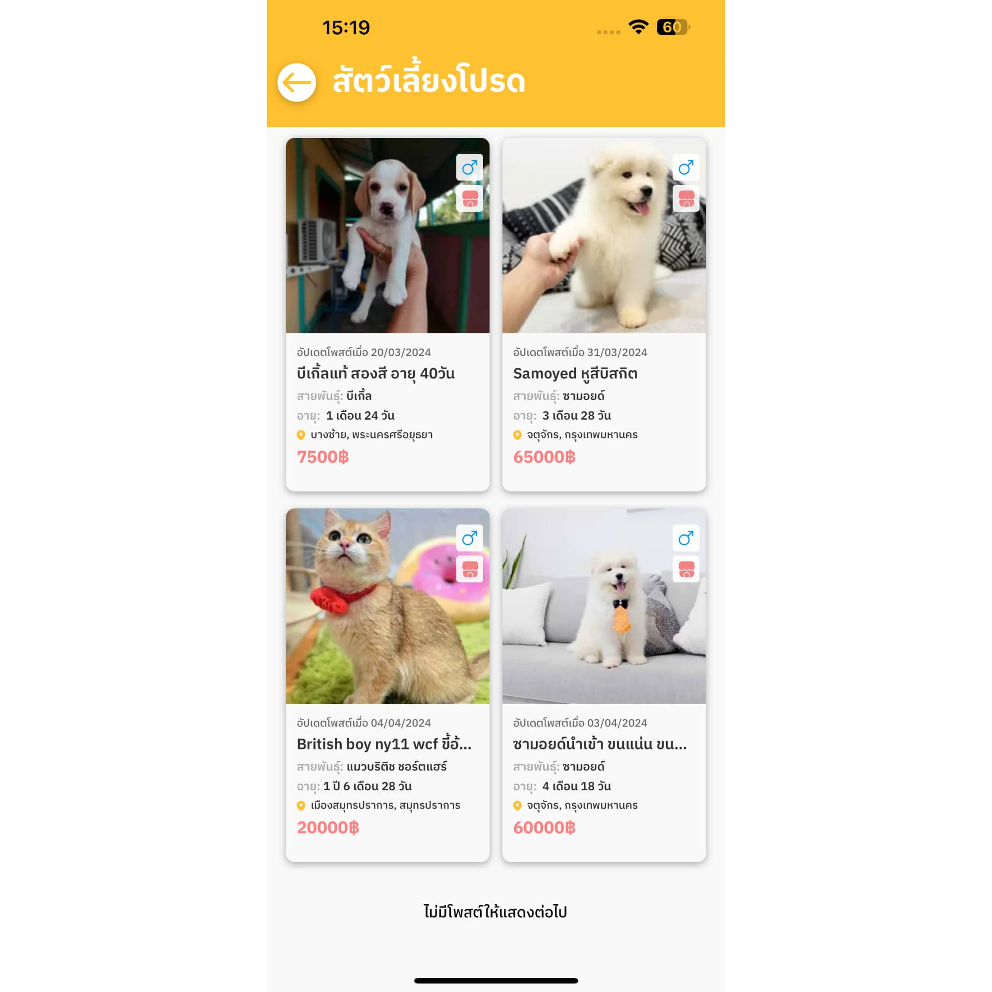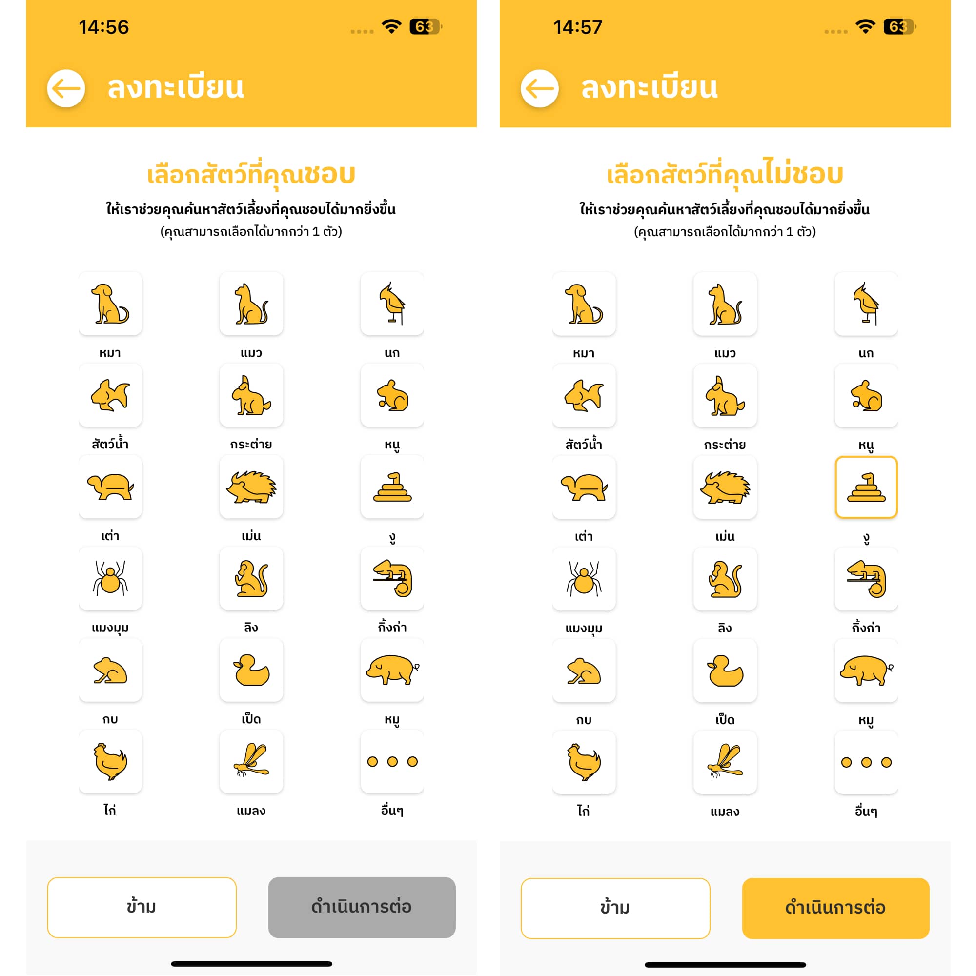 แล้วถ้าเราเลือกเป็นผู้ซื้อ ตัวแอปก็จะให้เราเลือกสัตว์ที่ชอบ กับสัตว์ที่เราไม่ชอบ ซึ่งทำให้ง่ายต่อการค้นหาสัตว์ที่ต้องการมากขึ้น
