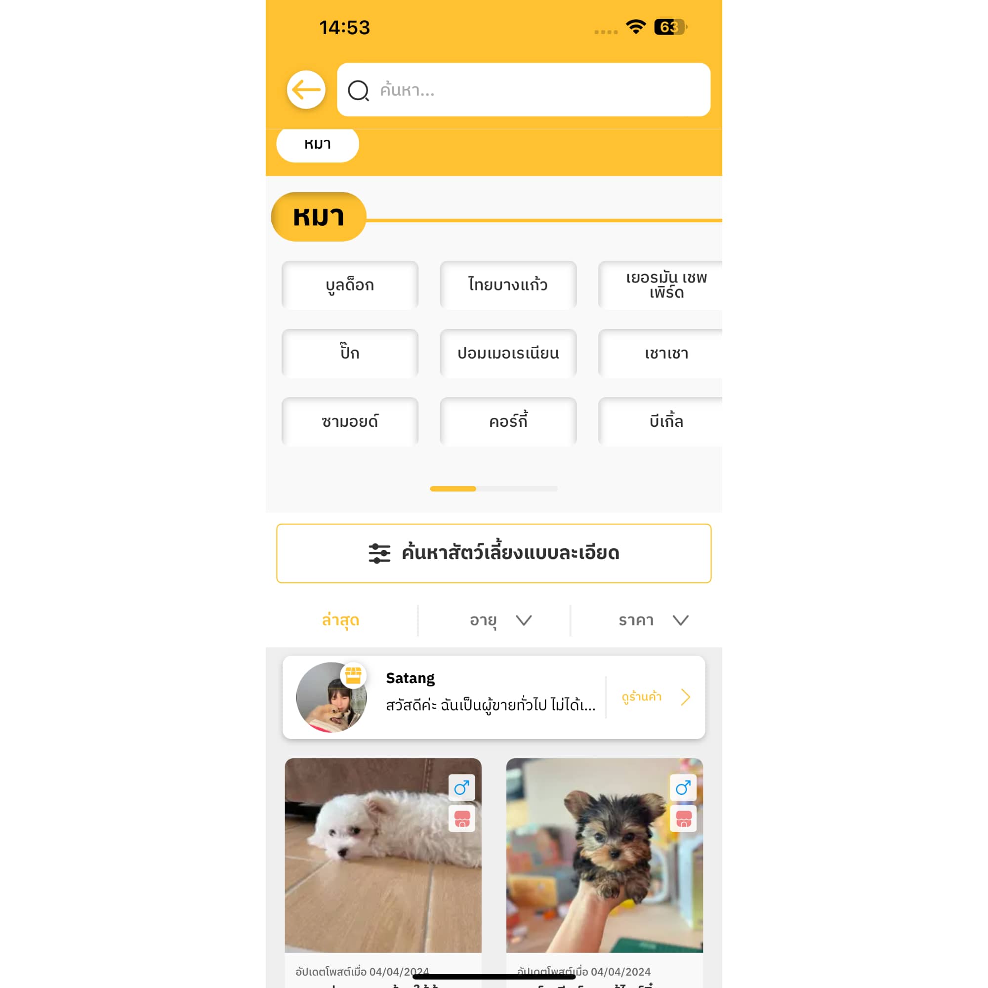 อย่างเช่น ทีมงานเลือกหมา ตัวแอปก็จะมีหมาพันธุ์ต่าง ๆ มาให้เราได้เลือก หรือจะค้นหาเองก็ได้