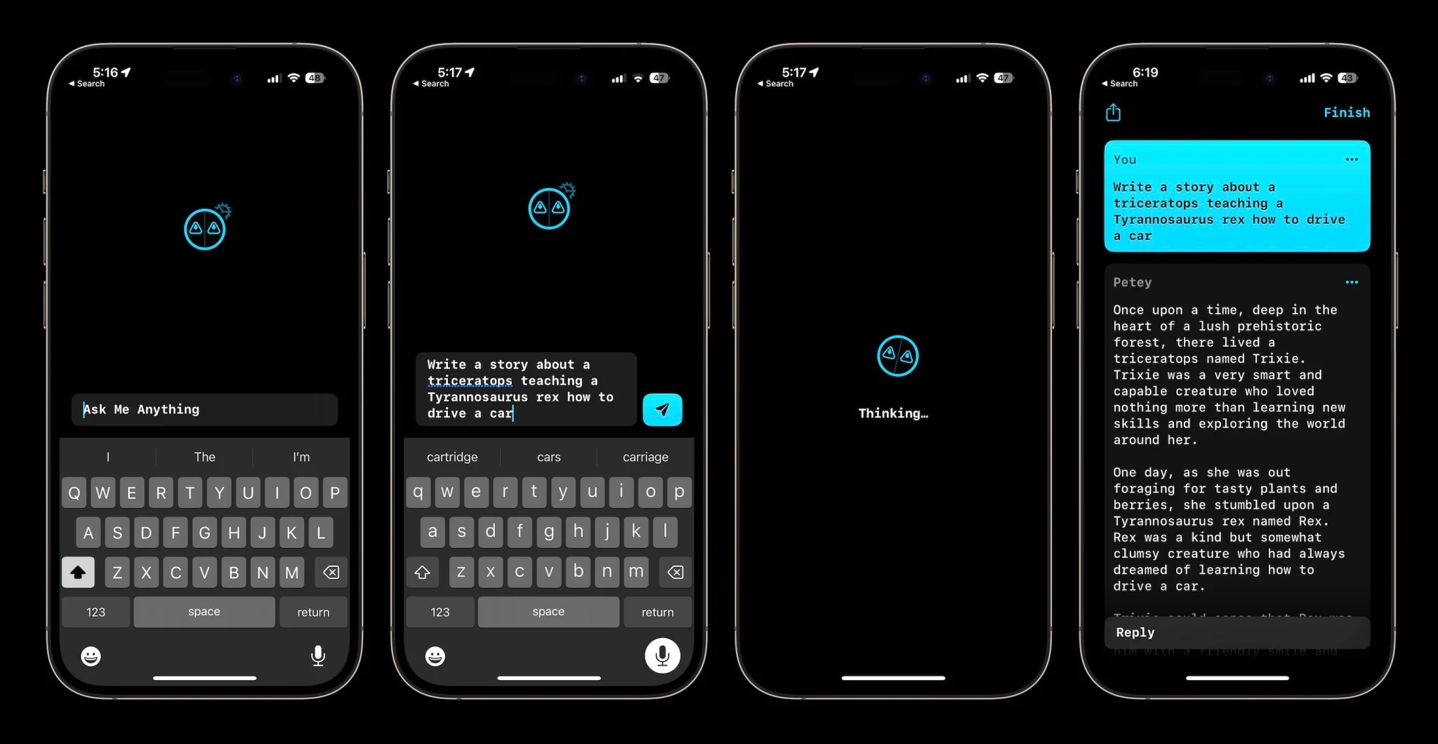 ช่วงเดือนมีนาคมที่ผ่านมา มีแอปใหม่ชื่อ watchGPT ที่ให้ผู้ใช้ใช้งาน ChatGPT บน iPhone และ Apple Watch ได้ง่ายดาย แต่ไม่นานหลังจากนั้นก็ได้เปลี่ยนชื่อเป็น Petey และการอัปเดตแอปล่าสุดนี้ก็ได้เพิ่มความฉลาดมากขึ้น รองรับการทำงานกับ Apple Music และการปรับปรุงอื่น ๆ ด้วย