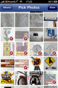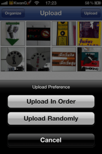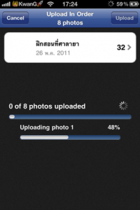 เลือกได้แล้ว ภาพก็จะไปขึ้นในหน้าแอพของเรา แล้วเลือกอัพโหลด และเลือกอัลบั้มที่ต้องการได้เลย