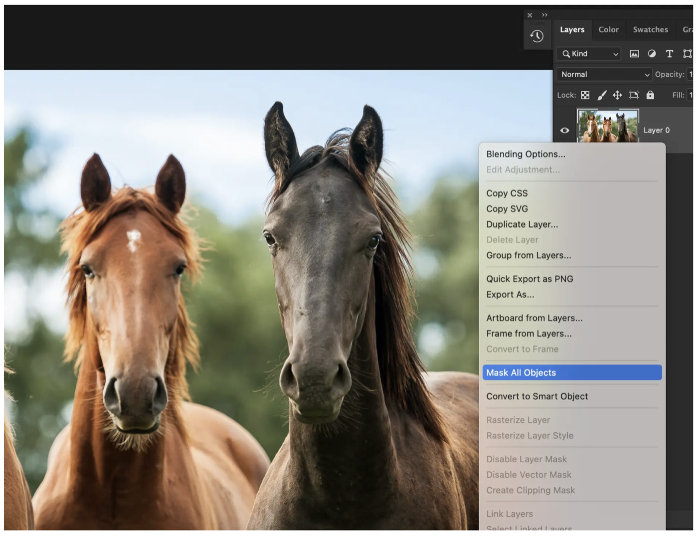 เลือก Mask All Objects ได้โดยการกดคลิกขวาที่เลเยอร์ของรูปภาพ