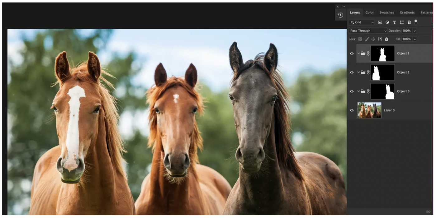ก็จะได้ภาพของม้าที่ถูกแยกเลเยอร์ออกจากกัน 3 ตัวโดยอัตโนมัติ