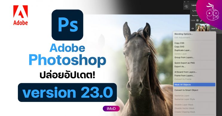 เครื่องมือ Object Selection เป็นเครื่องมือพื้นฐานทั่วไป ที่นิยมใช้ในโปรแกรม Photoshop ที่ใช้ในการเลือกวัตถุเฉพาะ ทำให้เราทำงานได้สะดวกขึ้น เวอร์ชัน 23.0 ที่ปล่อยอัปเดตมานี้ จะช่วยเพิ่มประสิทธิภาพในการทำงานของเครื่องมือ Object Selection ให้ฉลาดขึ้นกว่าเดิม โดยจะช่วยให้เราเลือกวัตถุได้อัตโนมัติ ได้เพียงแค่เราวางเมาส์ไว้เหนือรูปภาพและคลิก ทำงานได้อย่างมีประสิทธิภาพขึ้น รีทัชภาพเร็วขึ้น ง่าย และปลดปล่อยความคิดสร้างสรรค์ และปรับปรุงคุณภาพการแสดงตัวอย่างและการ masking ง่ายๆ เพียงแค่คลิกบนวัตุที่ต้องการ นอกจากนี้ยังสามารถเลือกวัตถุแบบทั้งเลเยอร์ได้