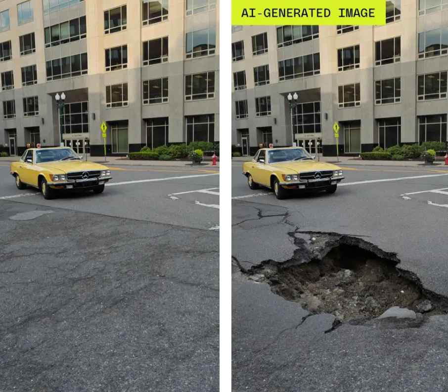 *ถึงแม้จะมีการป้องกันโดยเพิ่ม Meta data ว่าสร้าง AI, แต่ภาพนั้นก็จะถูกเอาข้อความออกได้ ด้วยการแคปหน้าจอ