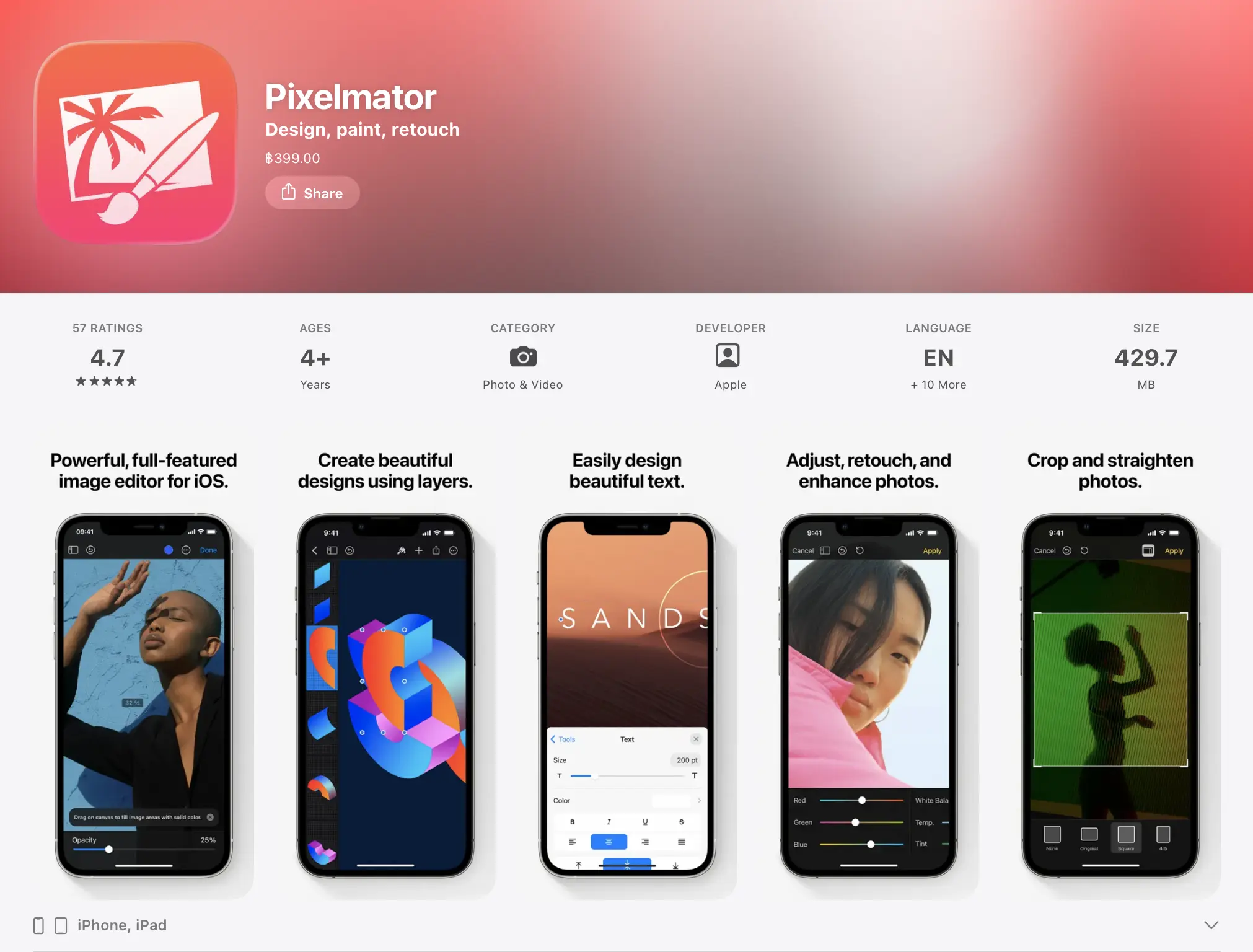 ส่วนแอปแก้ไขรูปภาพ Photomator ที่ใช้งานได้ฟรีสำหรับ iPhone และ iPad ใน App Store ซึ่ง Apple ไม่ได้กล่าวถึงการยุติการอัปเดตสำหรับแอปนั้น