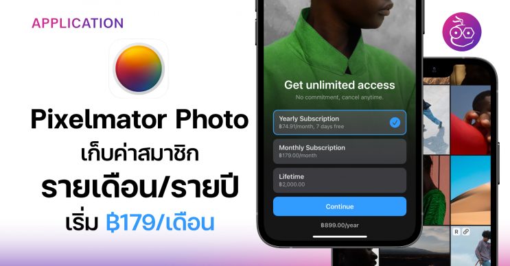 Pixelmator Photo สำหรับ iPhone/iPad เริ่มเก็บค่าบริการแบบรายเดือน รายปี และแบบตลอดชีพแล้ว รายเดือนเริ่มที่ ฿179/เดือน ซื้อเป็นแบบรายปีคุ้มกว่า ภายในปีนี้และปีหน้าจะเป็นตัวแอปสำหรับ Mac โดยเฉพาะ
