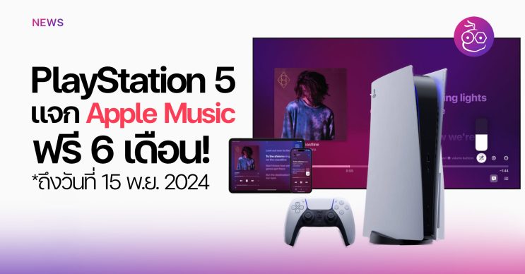 ใครมี PlayStation 5 รีบเลย! รับสิทธิ์ฟัง Apple Music ฟรี 6 เดือน กดรับสิทธิ์ได้จนถึงวันที่ 15 พ.ย. 2024  เฉพาะคนที่ไม่เคยใช้ Apple Music เท่านั้น!