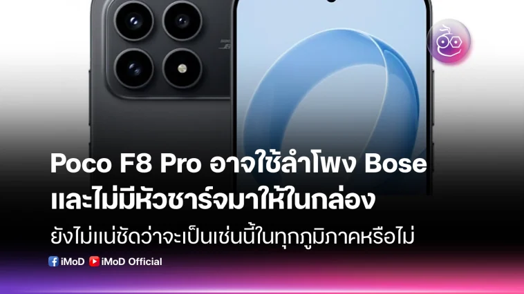 มีข่าวลือว่า Poco F8 Pro จะมาพร้อมระบบเสียงจาก Bose แต่จะไม่มีที่ชาร์จในกล่อง โดยยังไม่แน่ชัดว่าจะเป็นเช่นนี้ในทุกภูมิภาคหรือไม่