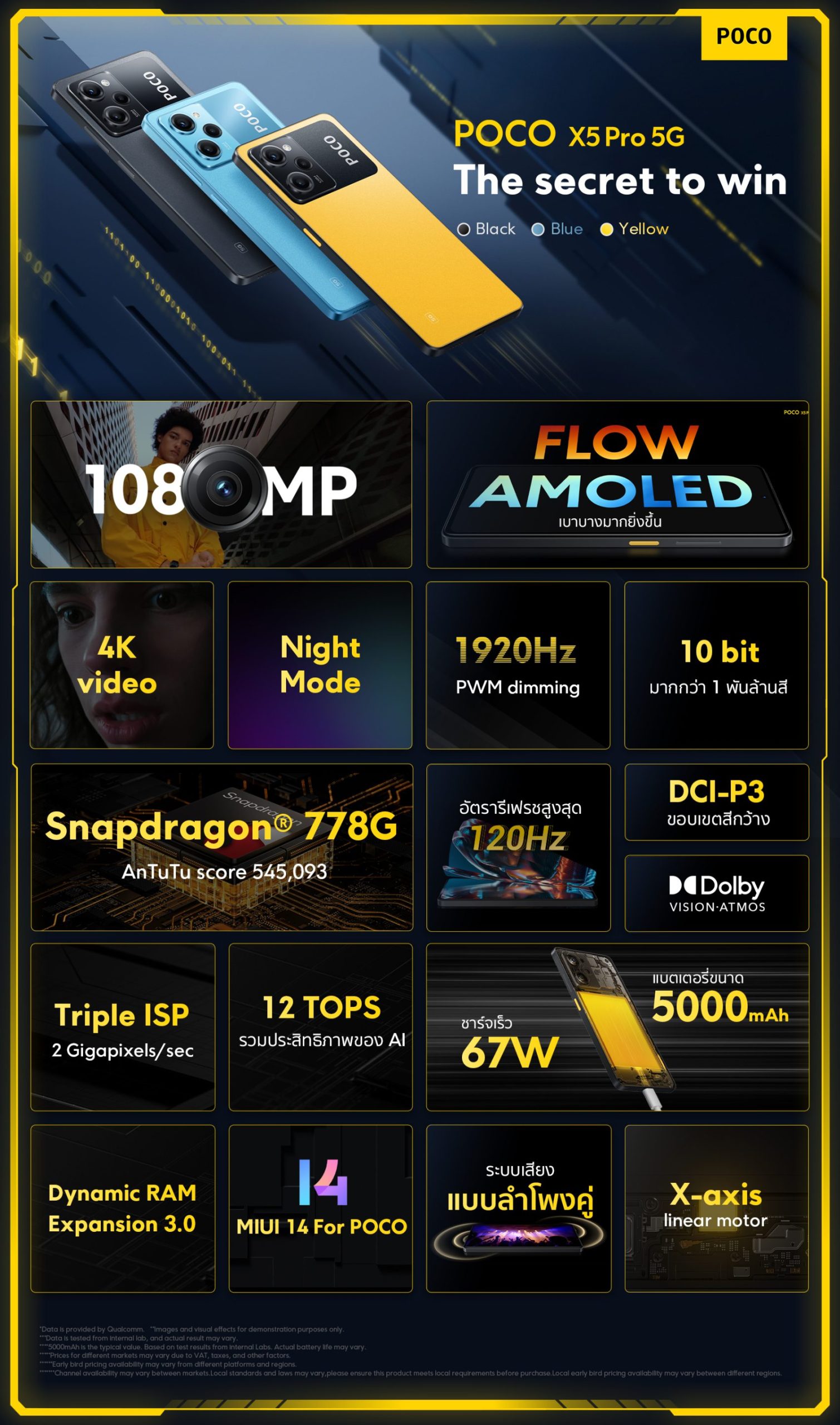 POCO ตระกูล X Series เปิดตัวออกมา 2 รุ่นด้วยกัน ได้แก่ POCO X5 5G และ POCO X5 Pro 5G โดยมีไฮไลท์เด่น ดังนี้