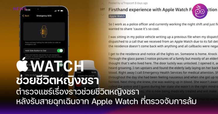 อีกหนึ่งเรื่องราวดี ๆ จากการช่วยเหลือชีวิตหญิงชราด้วยฟีเจอร์ตรวจจับการล้ม (Fall Detection) ที่ถูกแชร์โดยเจ้าหน้าที่ตำรวจผ่านฟอรัม Reddit จากการได้รับการโทรฉุกเฉินและเข้าช่วยเหลือในอุบัติเหตุครั้งนี้ได้ทันเวลา
