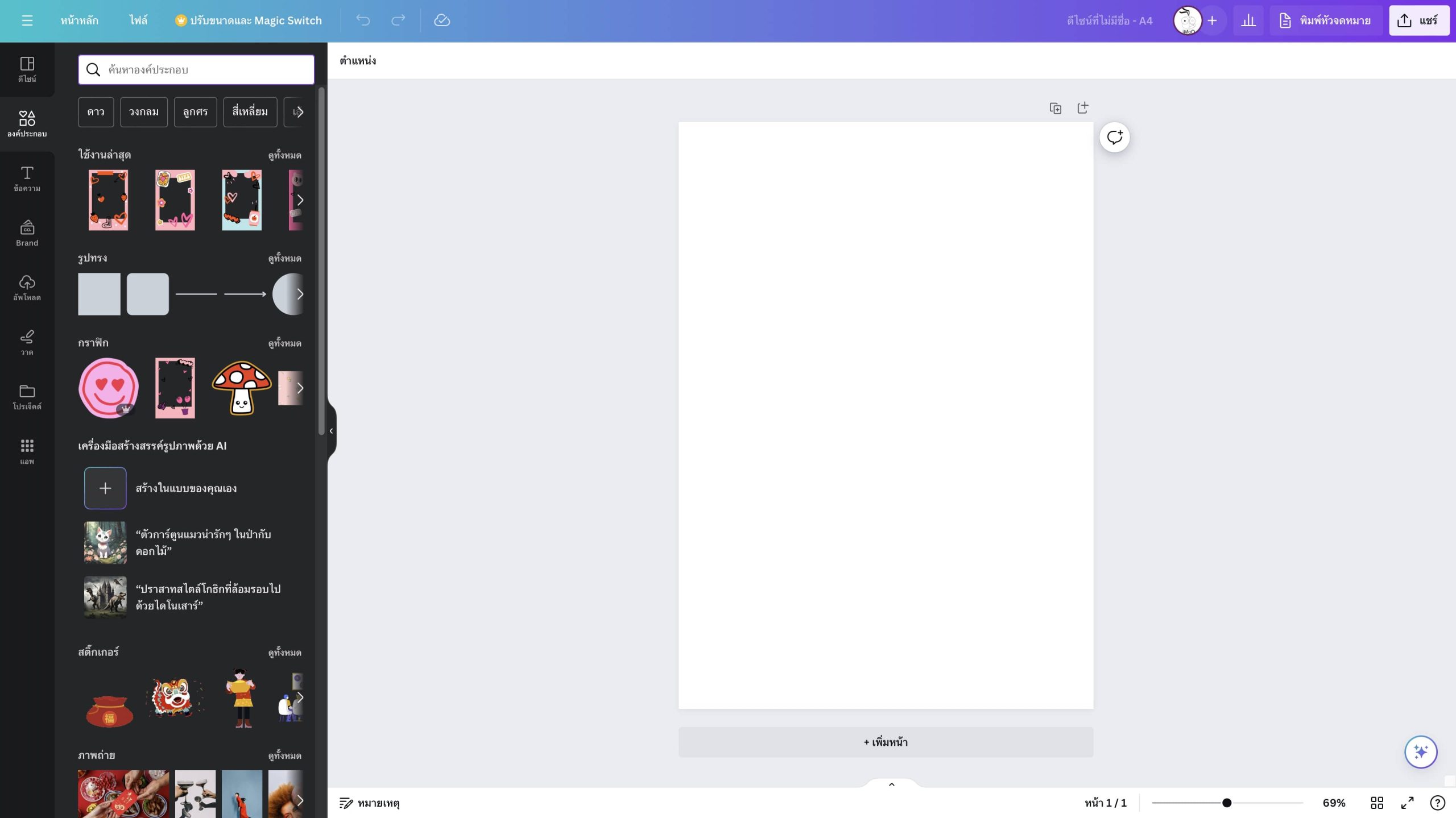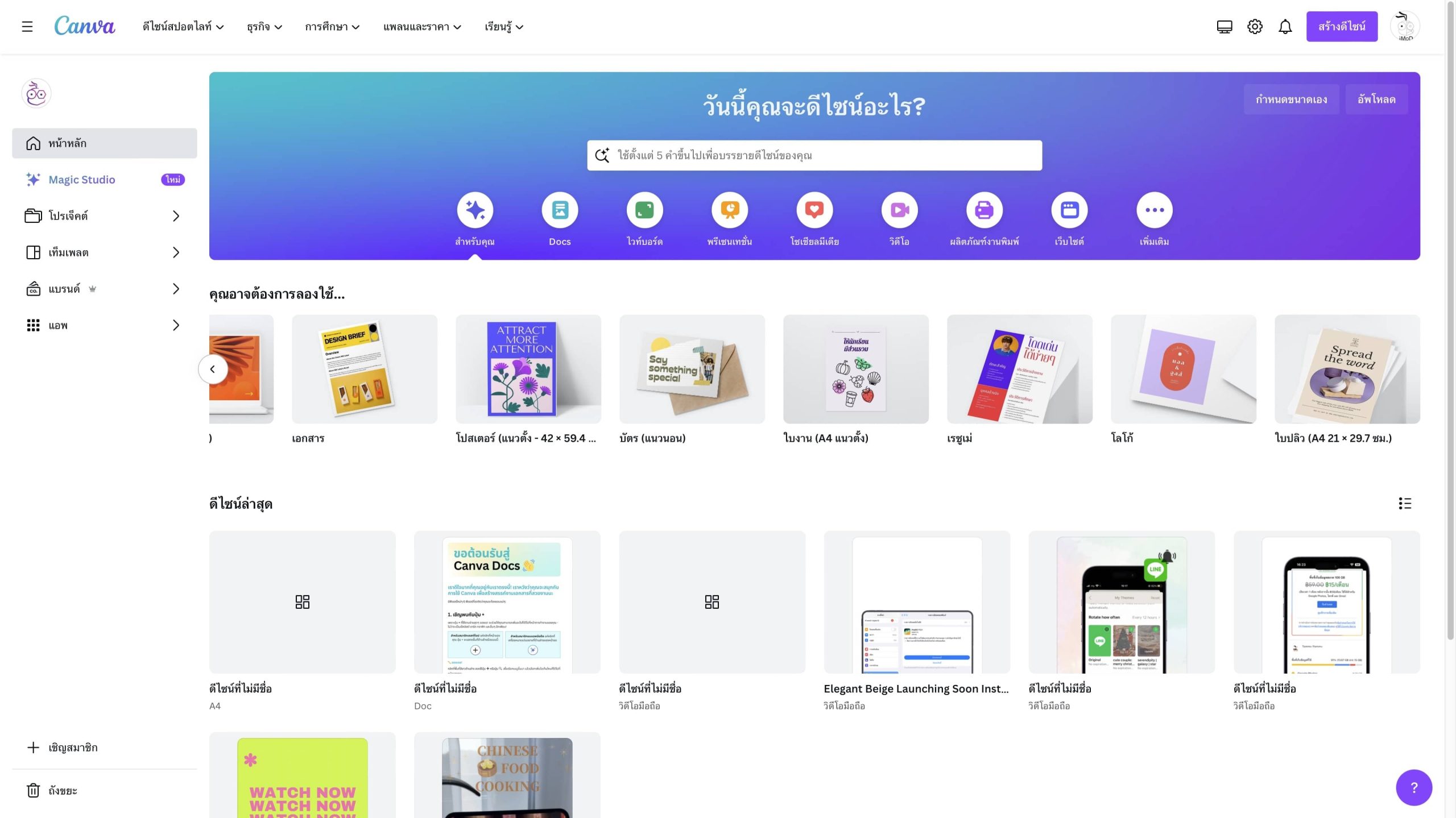 เข้ามาที่ Canva จากนั้นเลือกขนาดดีไซน์ที่ต้องการได้เลย ทีมงานจะเลือกเป็น “A4”