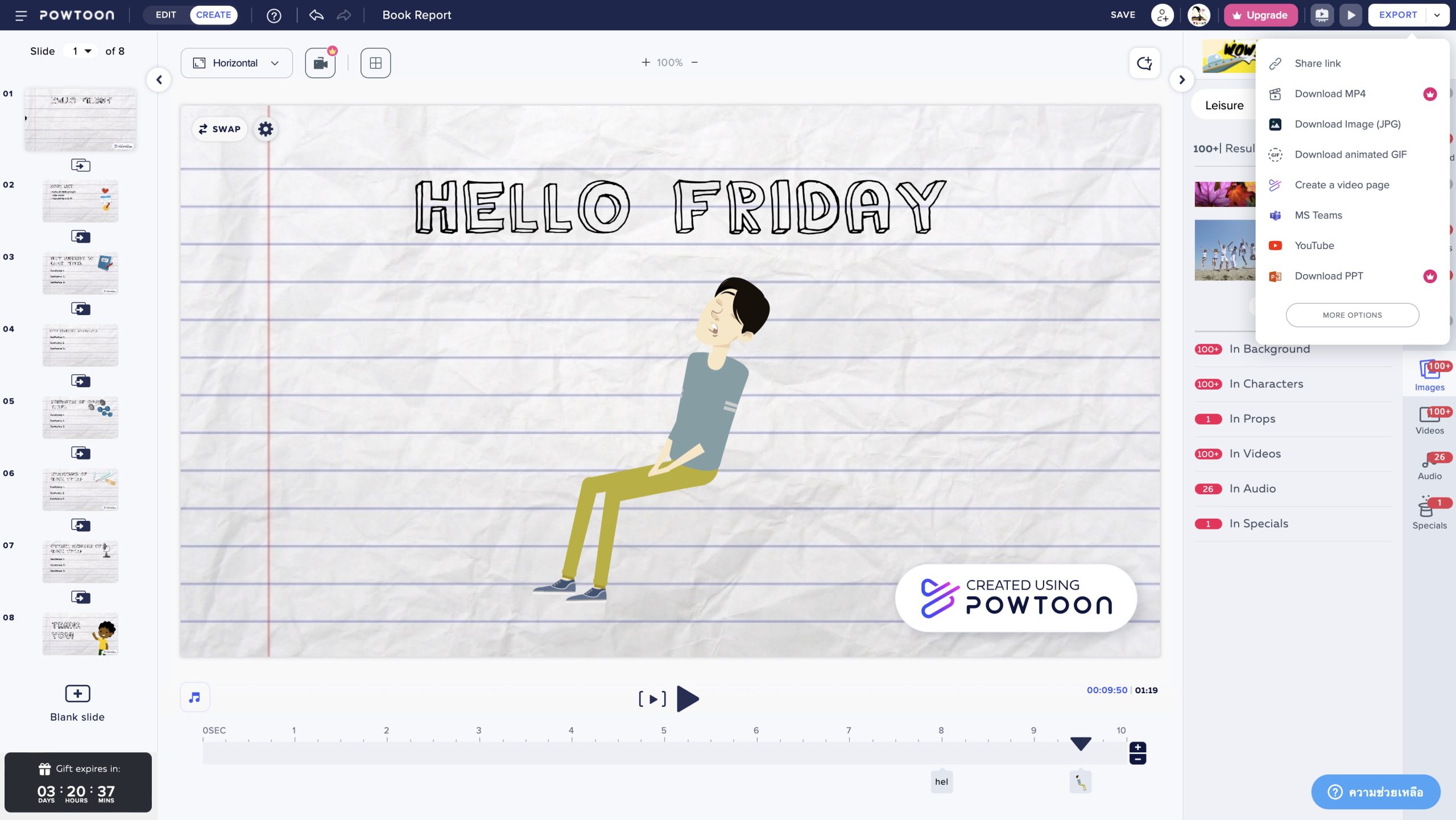 พอเราตกแต่งงานนำเสนอเสร็จก็กด “Export” ไฟล์ตรงมุมบนขวาได้เลย