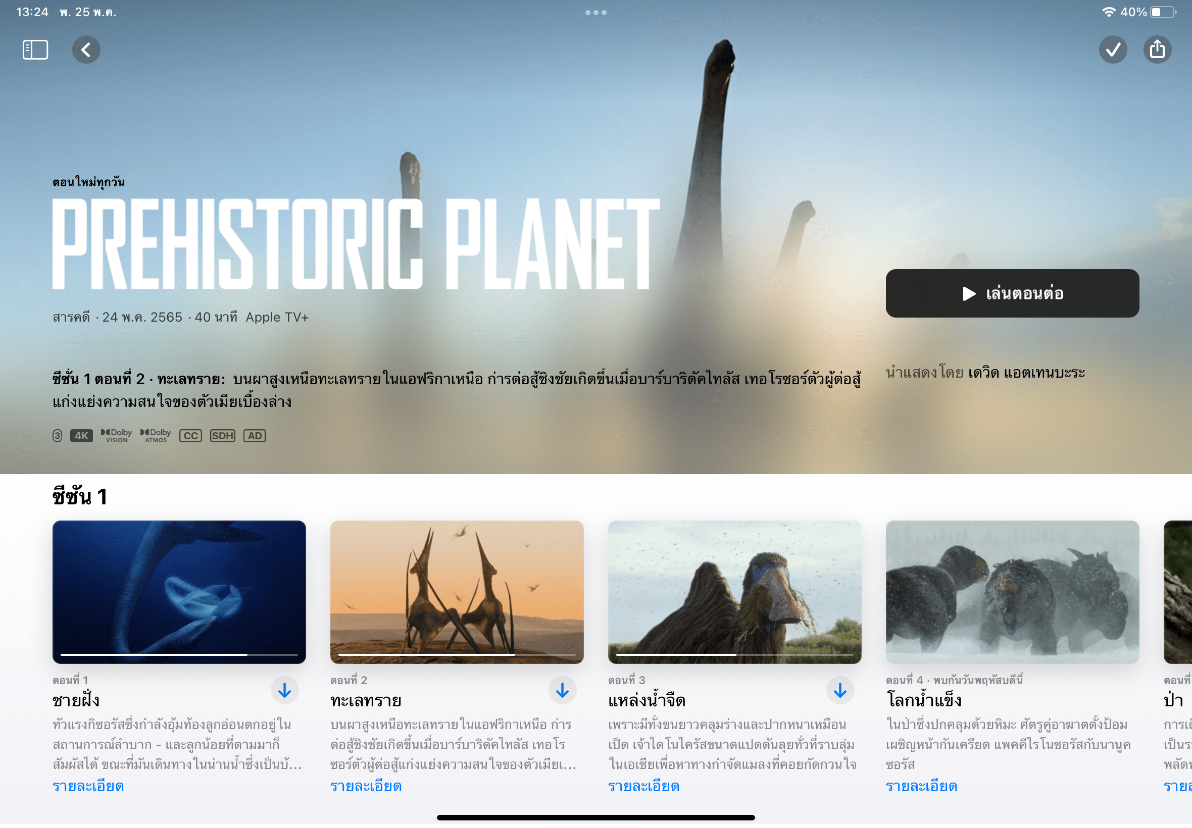 สามารถรับชมได้ที่ลิงค์ : Prehistoric Planet | Apple TV+https://tv.apple.com › show › prehistoric-planet