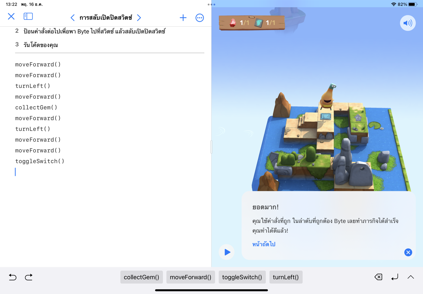 - และจะมีความซับซ้อนขึ้นเรื่อยๆ ให้เราพิชิตเป้าหมาย เพื่อให้เรามีความเข้าใจในชุดคำสั่งมากขึ้นค่ะ ทำให้สำเร็จทุกเป้าหมาย เพื่อไปยัง หน้าถัดไป จนกว่าบทเรียนทั้งหมดจะจบลง เท่านี้เราก็จะมีพื้นฐานเริ่มต้นสำหรับการเขียนแอป ด้วยตัวเองแล้ว
