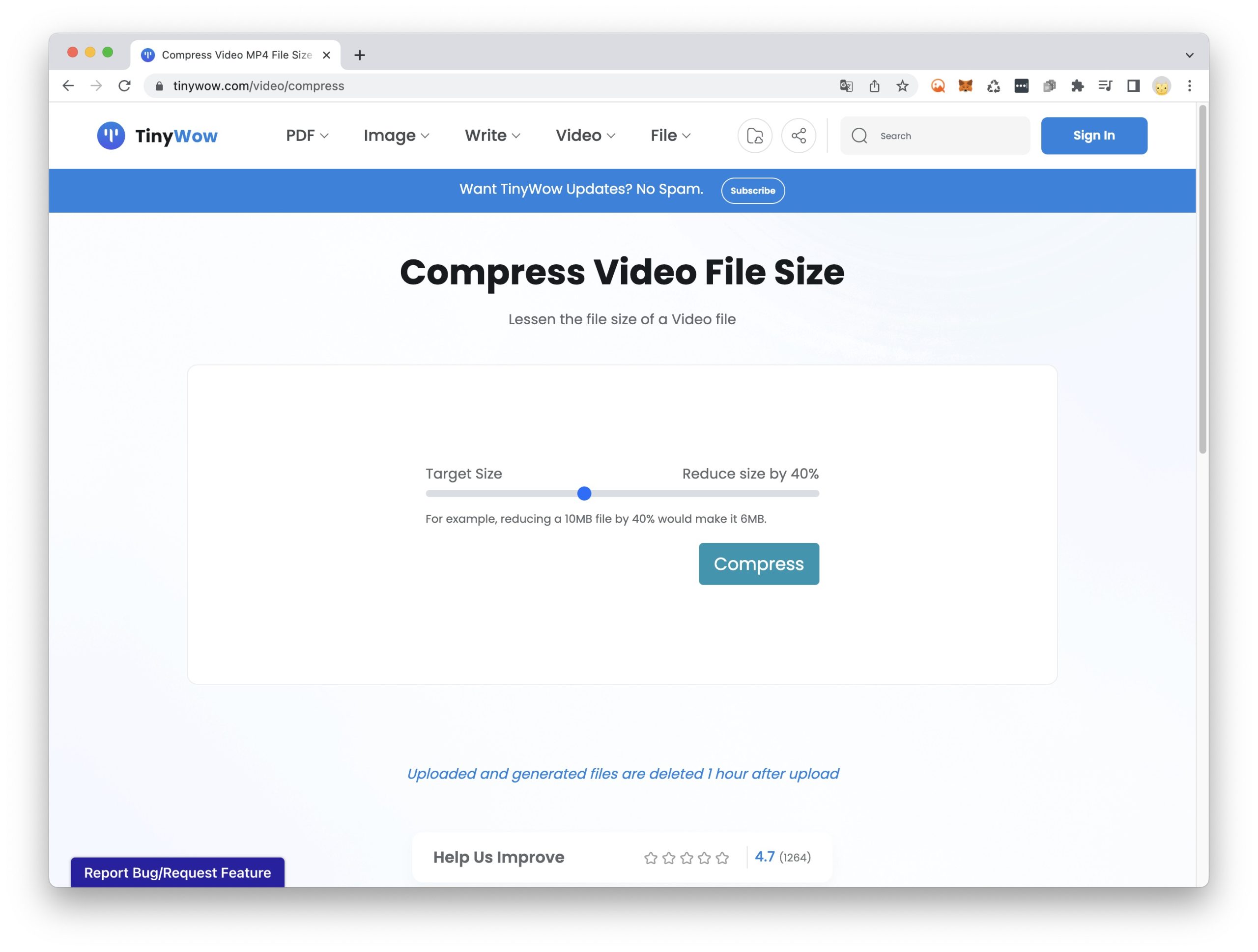 หากเรามีวิดีโอที่เป็นไฟล์ขนาดใหญ่ เราสามารถอัปโหลดวิดีโอในเครื่องมือ Compress Video แล้วก็เลือกขนาดที่ต้องการปรับลดวิดีโอได้เลยว่าจะลดลงอีกกี่เปอร์เซ็นต์