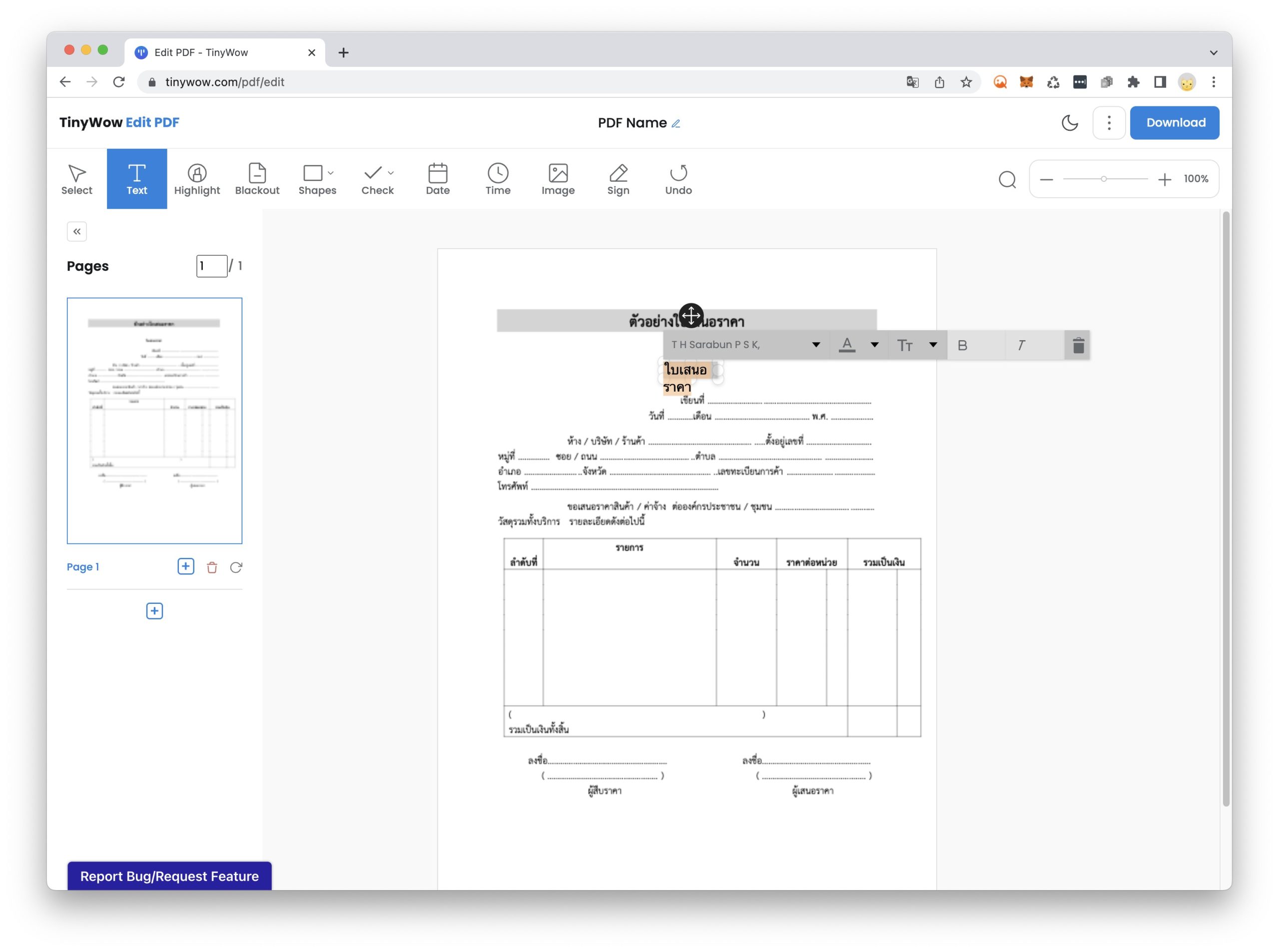 จากนั้นก็ใช้เครื่องมือแก้ไข้ข้อความใน PDF ได้เลย ง่ายสุด ๆ