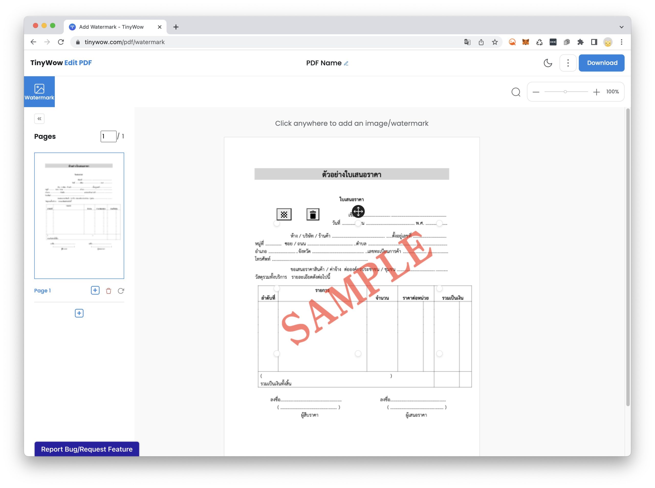 การเพิ่มลายน้ำในเอกสาร PDF เป็นเรื่องง่ายขึ้นมาทันที เพียงแค่เลือกใช้เครื่องมือ Add Watermark จากนั้นก็อัปโหลดเอกสาร PDF ขึ้นไป แล้วก็อัปโหลดรูปภาพลายน้ำขึ้นไปด้วย