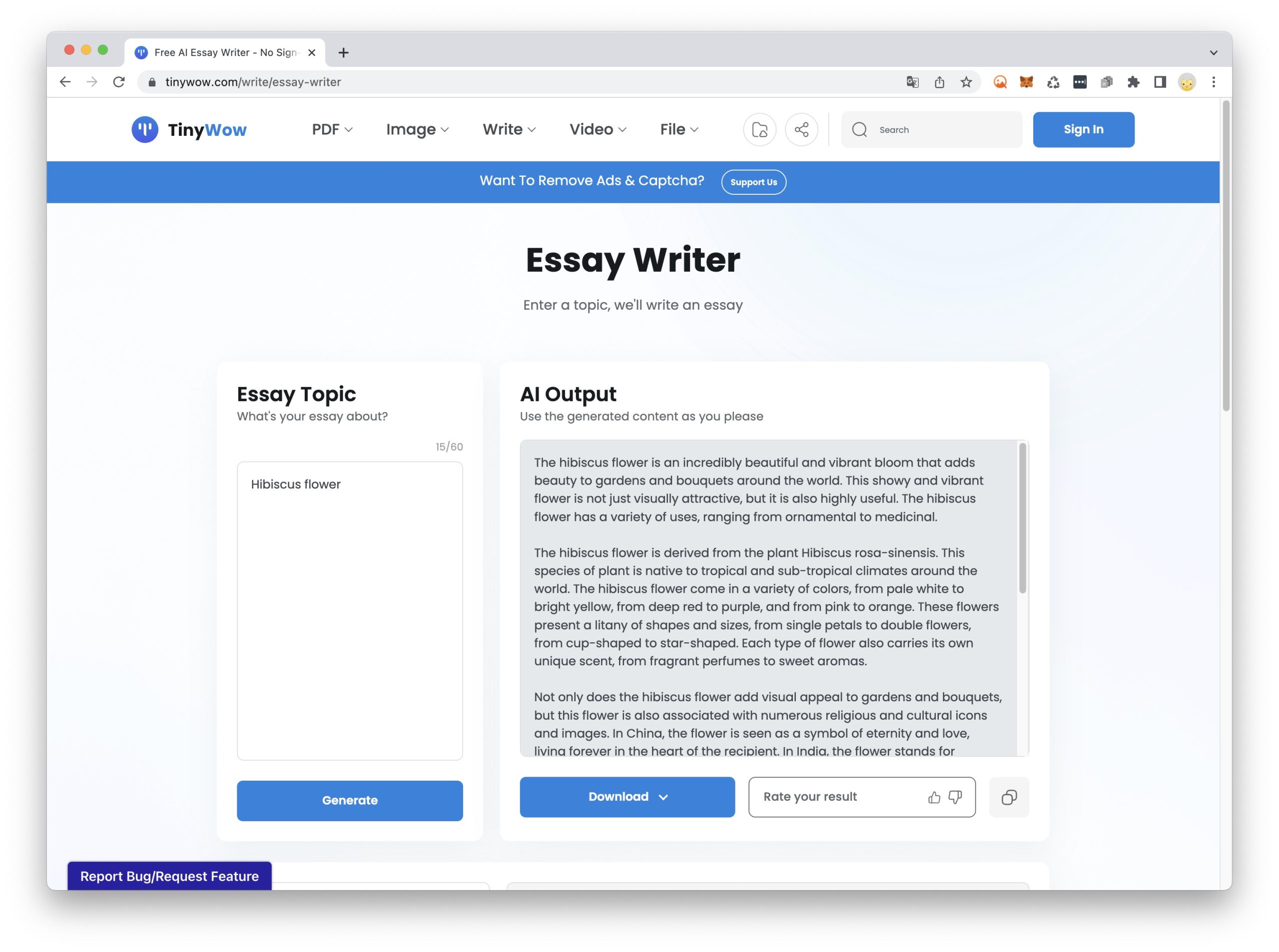 หากเราต้องการบทความหรือร้อยแก้วที่เกี่ยวข้องกับเรื่อง ๆ หนึ่ง ก็สามารถใส่หัวข้อที่ต้องการ แล้วคลิก Generate ระบบ AI ก็จะรวบรวมข้อมูลและนำมาเขียนเป็นร้อยแก้วให้อย่างสวยงาม