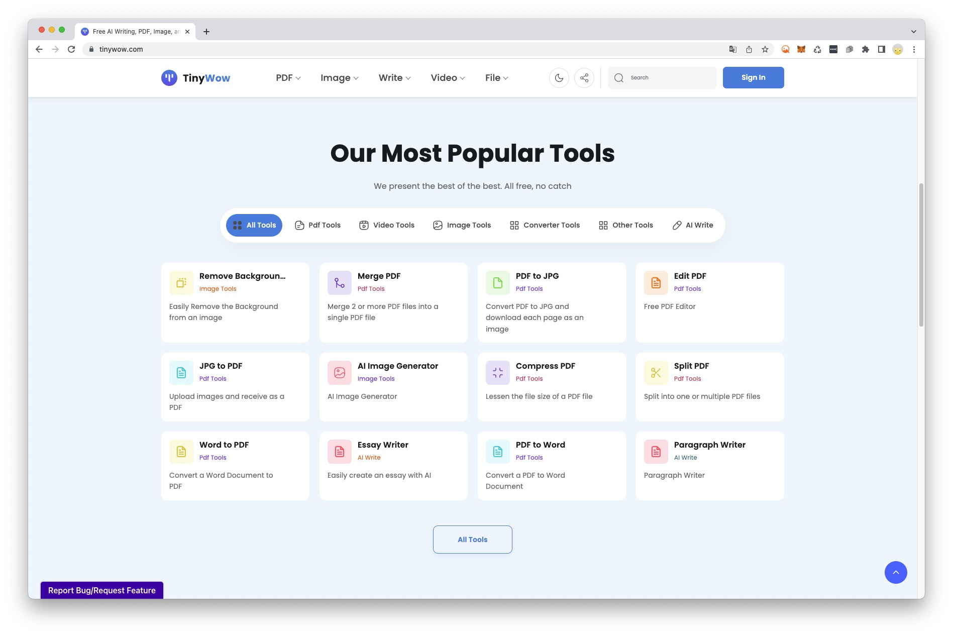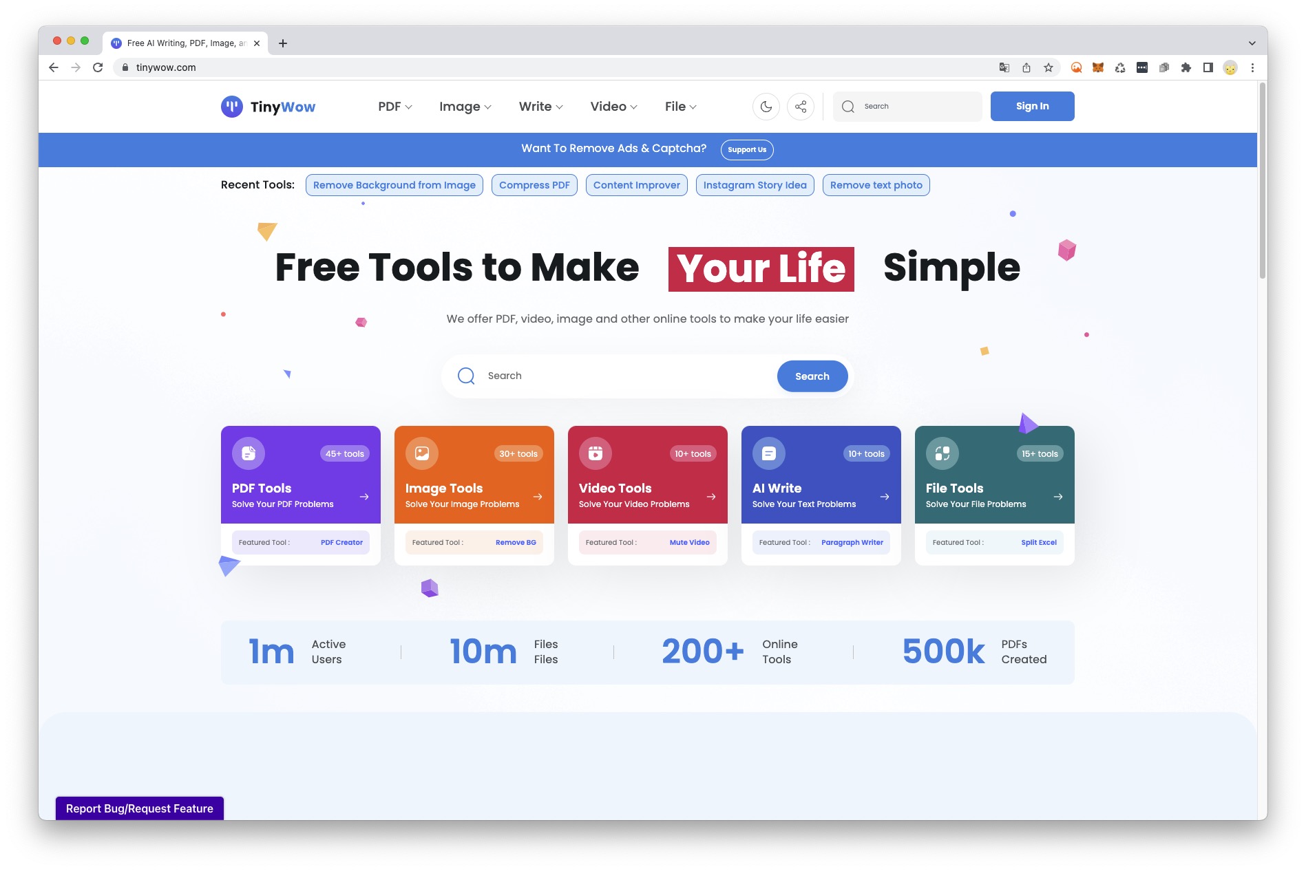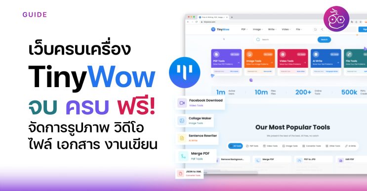 พรีวิว TinyWow รวมเครื่องมือฟรี! จัดการเอกสาร แต่งรูป ตัดวิดีโอ เขียนงานด้วย AI จบ ครบ ในเว็บเดียว