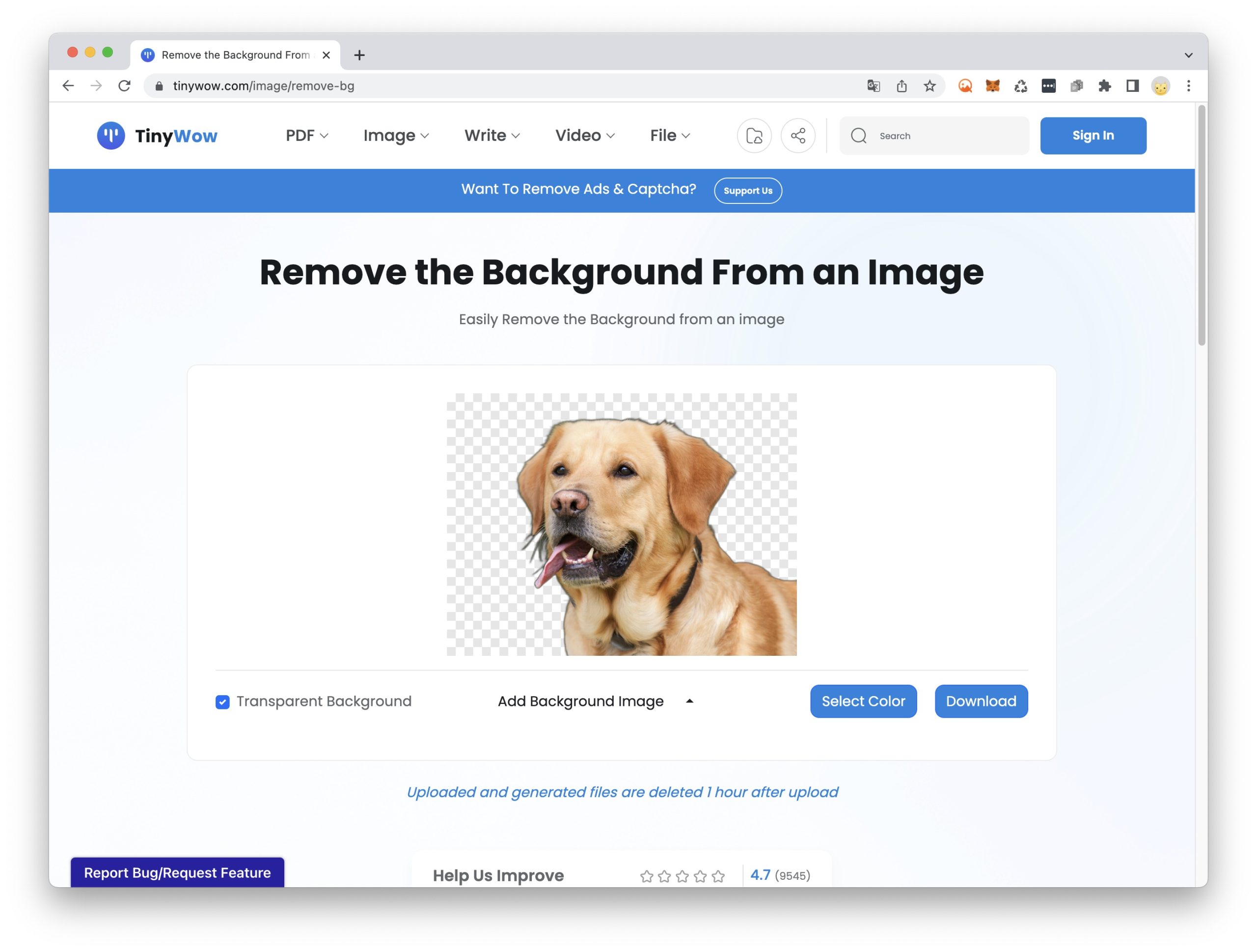Remove Background จะช่วยให้เราลบพื้นหลังออกจากวัตถุหลักในรูปภาพได้อย่างง่ายดาย เพียงแค่อัปโหลดรูปภาพที่ต้องการ จากนั้นเว็บก็จะใช้ AI ในการลบพื้นหลังออกจากรูปภาพให้อัตโนมัติ ซึ่งถือว่าลบได้เนียนพอสมควร นำไปใช้งานต่อได้เลย