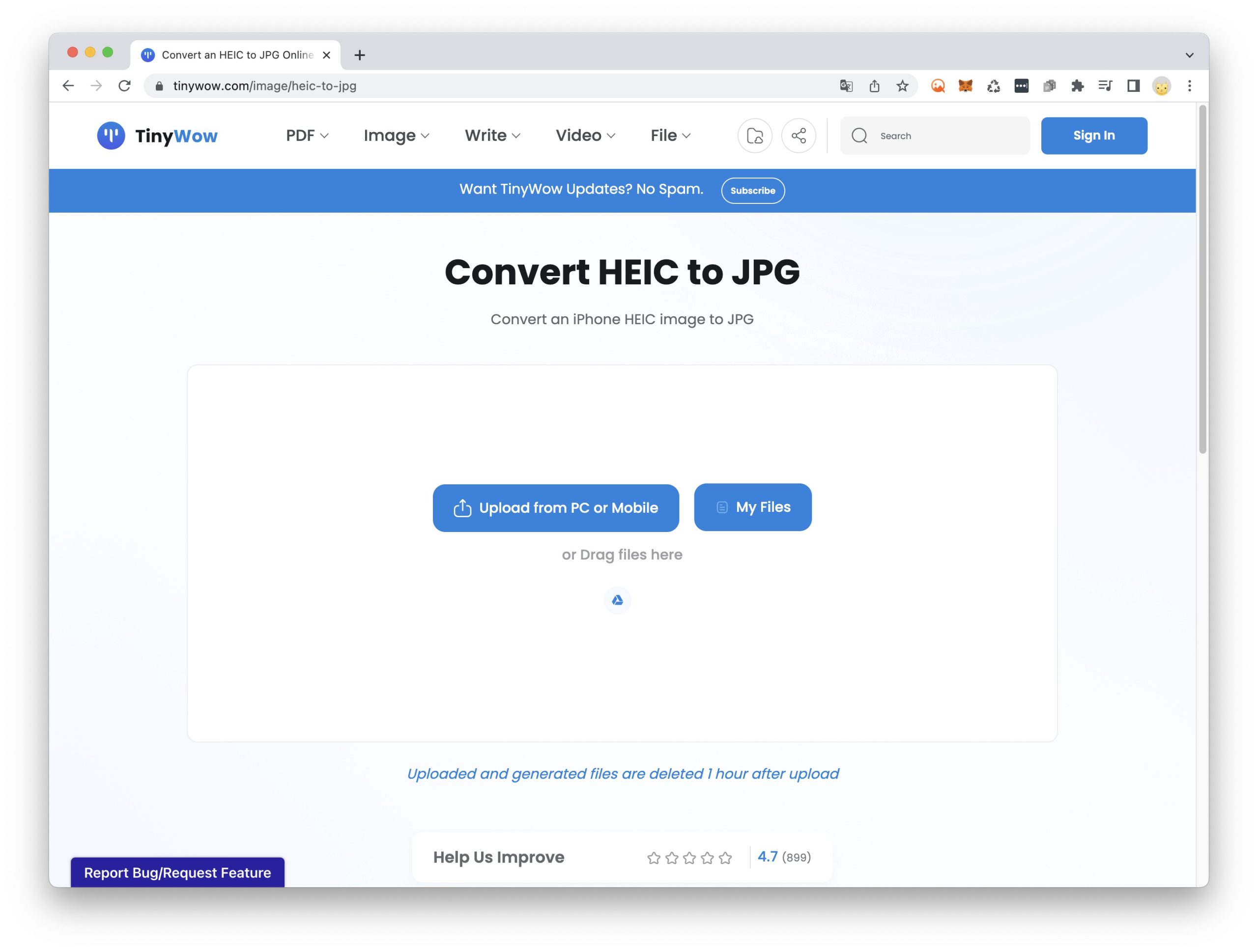 เครื่องมือสำหรับแปลงไฟล์ภาพ HEIC to JPG คงถูกใจคนใช้งาน iPhone, iPad ที่นำรูปภาพจากอุปกรณ์มาลงในคอมพิวเตอร์ แล้วอยากแปลงไฟล์ภาพเป็น JPG ก็สามารถอัปโหลดรูปภาพในเครื่องมือนี้ได้เลย
