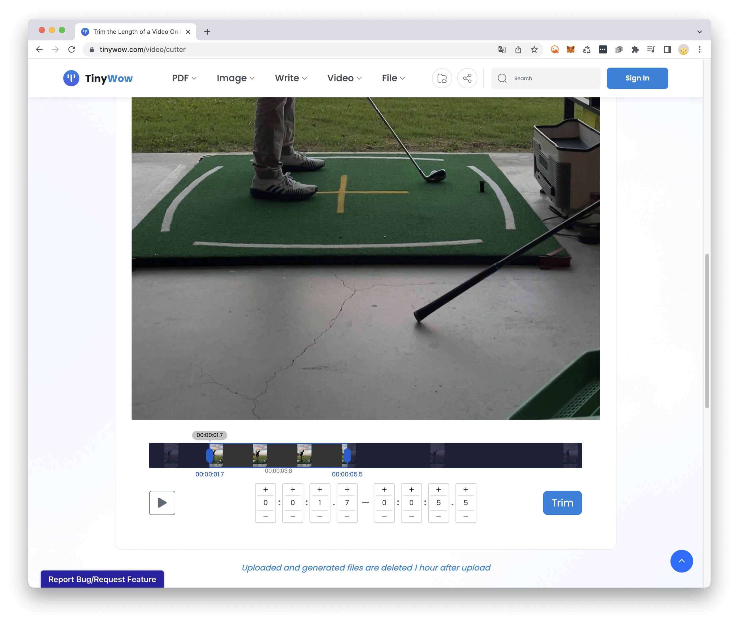 เราสามารถอัปโหลดวิดีโอที่มีอยู่ แล้วนำมาตัดบางส่วนออกได้ง่าย ๆ ด้วยเครื่องมือ Trim Video ได้เลย รองรับวิดีโอไฟล์ MP4 แต่ด้วยไฟล์วิดีโอที่มีขนาดใหญ่ อยากจจะทำให้การโหลดวิดีโอใช้เวลานาน เครื่องมือนี้อาจจะเหมาะสำหรับคนที่ไม่ต้องการใช้โปรแกรมอื่น ๆ ตัดวิดีโอ ก็สามารถตัดวิดีโอออนไลน์ผ่าน TinyWow ได้เลย