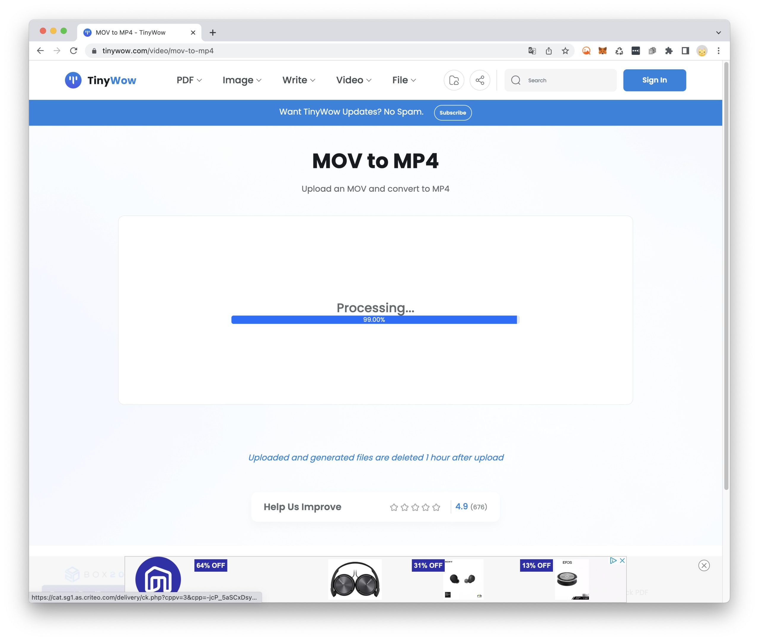 เว็บก็จะทำการแปลงไฟล์ให้อย่างรวดเร็ว เราก็จะได้ไฟล์ MP4 มาใช้งาน