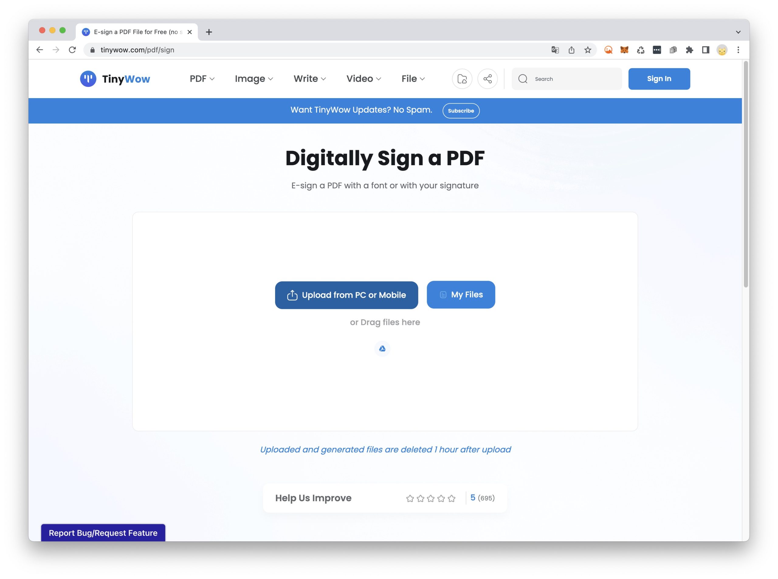 หากเราต้องลงชื่อหรือเซ็นเอกสาร PDF ก็เลือกใช้ Digitally Sign a PDF ได้เลย เพียงแค่อัปโหลดไฟล์ PDF ขึ้นไป