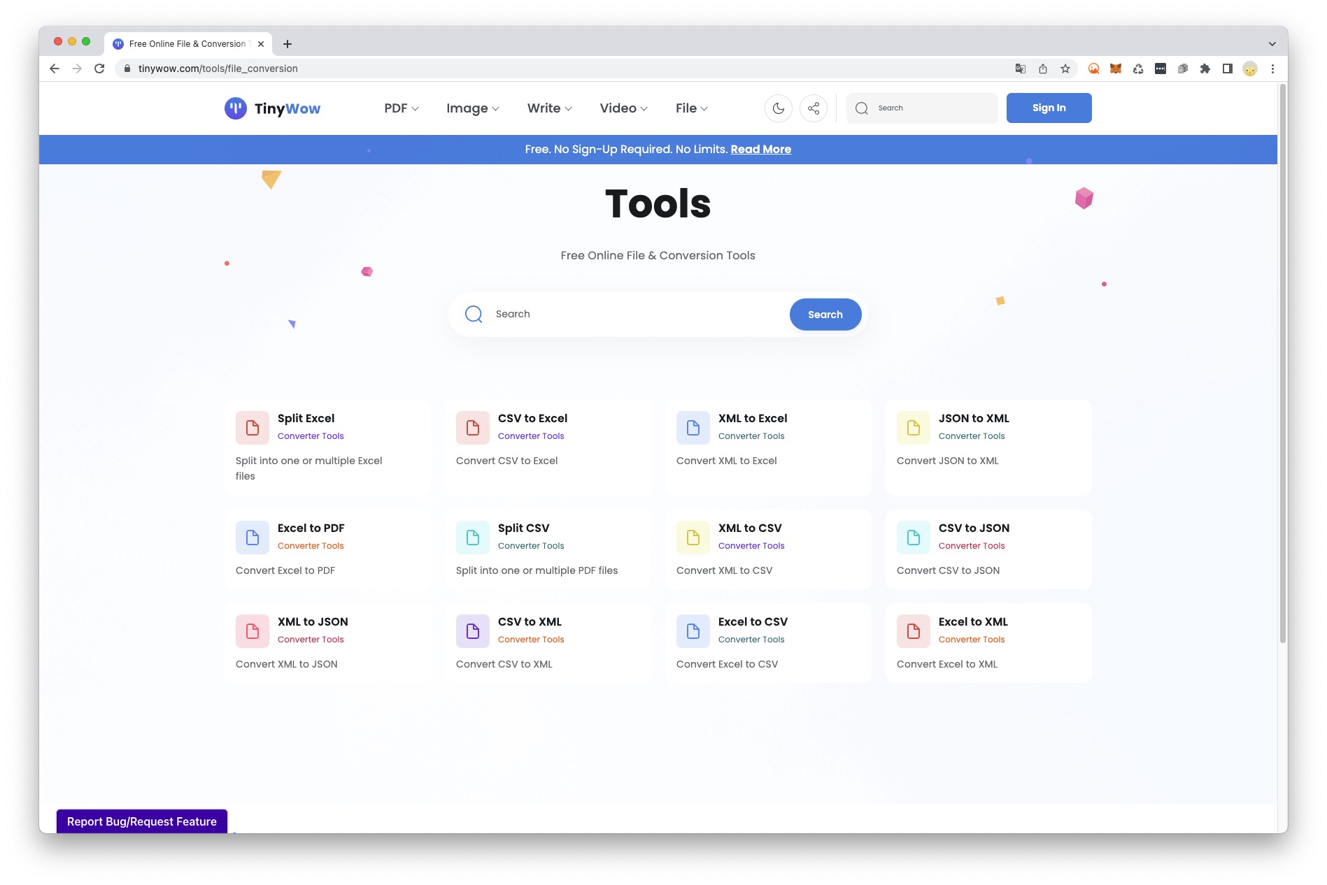 สำหรับไฟล์อื่น ๆ ก็มีเครื่องมือให้เลือกใช้งานด้วยเช่นกัน เช่น ไฟล์ Excel, CSV, XML, JSON เป็นต้น ส่วนใหญ่ก็จะเป็นเครื่องมือสำหรับการแปลงไฟล์