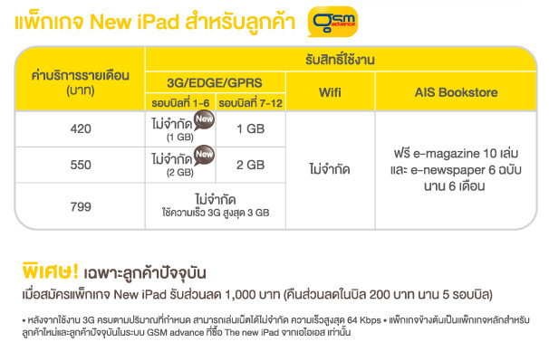 รายละเอียดเพิ่มเติม : http://www.ais.co.th/ipad/tariff.html