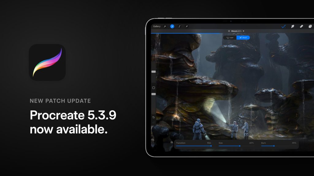 สำหรับแอป Procreate เวอร์ชัน.5.3.9 ผู้ใช้ต้องอัปเดต iPadOS 15.4.1 ขึ้นไป