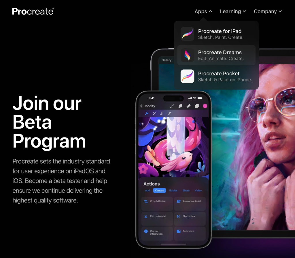 นอกจากนี้ Procreate ยังมีแอป Procreate Pocket สำหรับ iPhone และ Procreate Dreams สำหรับการทำ แอนิเมชัน โดยตรง และมาพร้อมกับฟอนต์ Eina 01, Impact และ Jack Armstrong BB ฟอนต์เหล่านี้ได้รับอนุญาตสําหรับการใช้งานส่วนตัวเท่านั้น Smiley Sans ยังรวมอยู่ในแอปภายใต้ใบอนุญาตฟอนต์แบบเปิด และคุณสามารถใช้ฟอนต์นี้สําหรับการใช้งานส่วนตัวและเชิงพาณิชย์ได้ด้วย