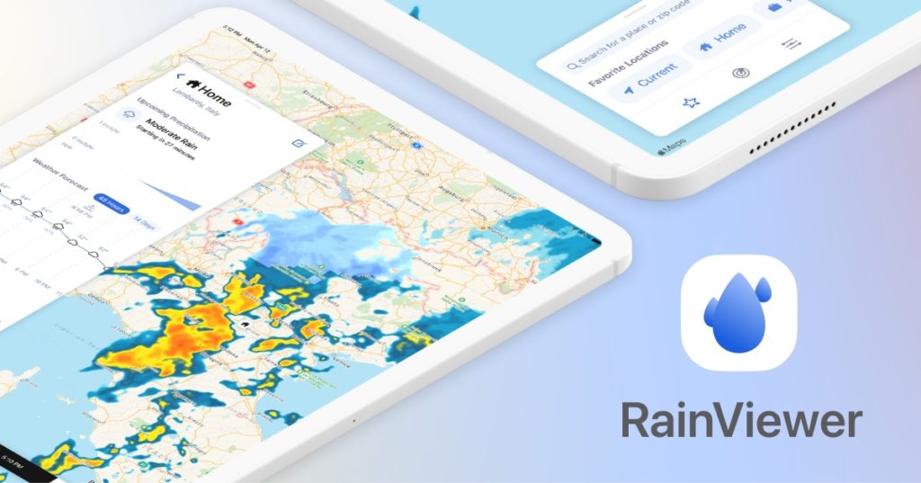 RainViewer เป็นแอปเรดาร์สภาพอากาศที่ผู้ใช้สามารถดูสภาพอากาศในแต่ละวันหรือล่วงหน้าได้ โดยมีข้อมูลที่ค่อนข้างละเอียด แสดงภาพเรดาร์พายุที่กำลังจะมาถึง โดยแสดงเป็นภาพเคลื่อนไหวที่คาดการ์ทิศทางของพายุ