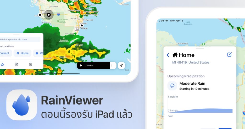 ซึ่ง RainViewer ในเวอร์ชันได้อัปเดตให้รองรับการแสดงผลบน iPad แล้ว ผู้ใช้สามารถดูพยากรณ์สภาพอากาศและข้อมูลฝนฟ้าต่าง ๆ อย่างละเอียดได้บน iPad สามารถดาวน์โหลดแอปได้ที่ App Store [แตะดาวน์โหลดที่นี่]