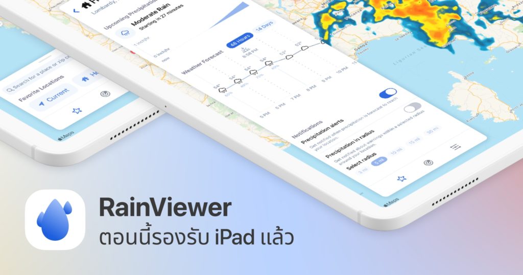 แอปติดตามและพยากรณ์สภาพอากาศ RainViewer อัปเดตเวอร์ชัน 2.3 มาพร้อมการรองรับการทำงานบน iPad แล้ว ดูรายละเอียดข้อมูลสภาพกาศได้บนหน้าจอที่ใหญ่ขึ้น