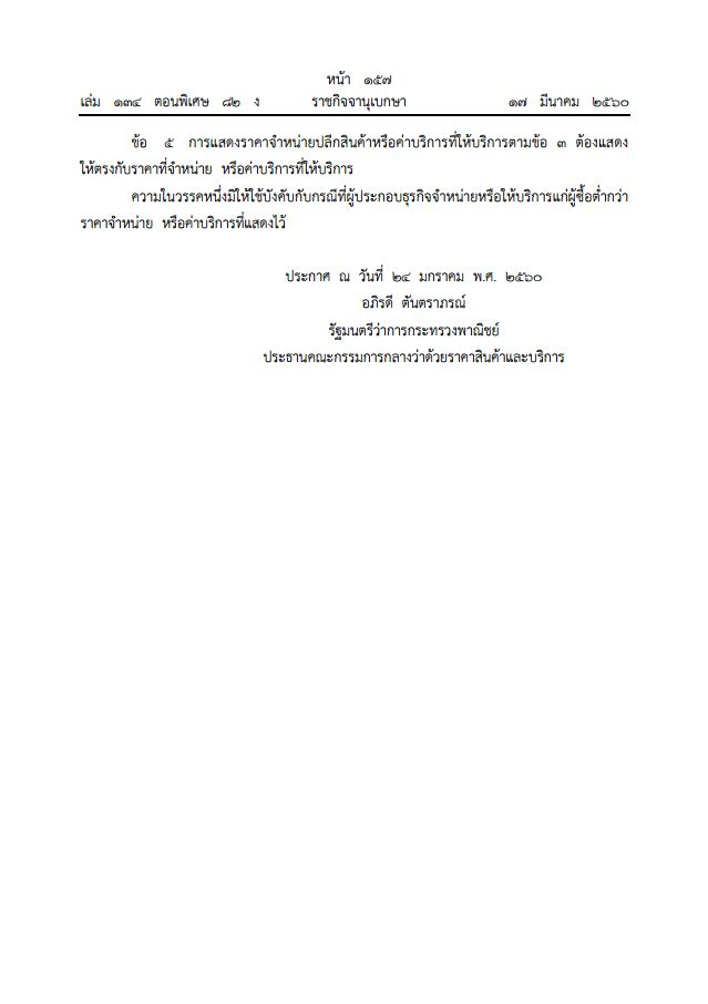 โดยที่คณะกรรมการกลางว่าด้วยราคาสินค้าและบริการได้มีมติเมื่อวันที่ ๖ มกราคม ๒๕๖๐