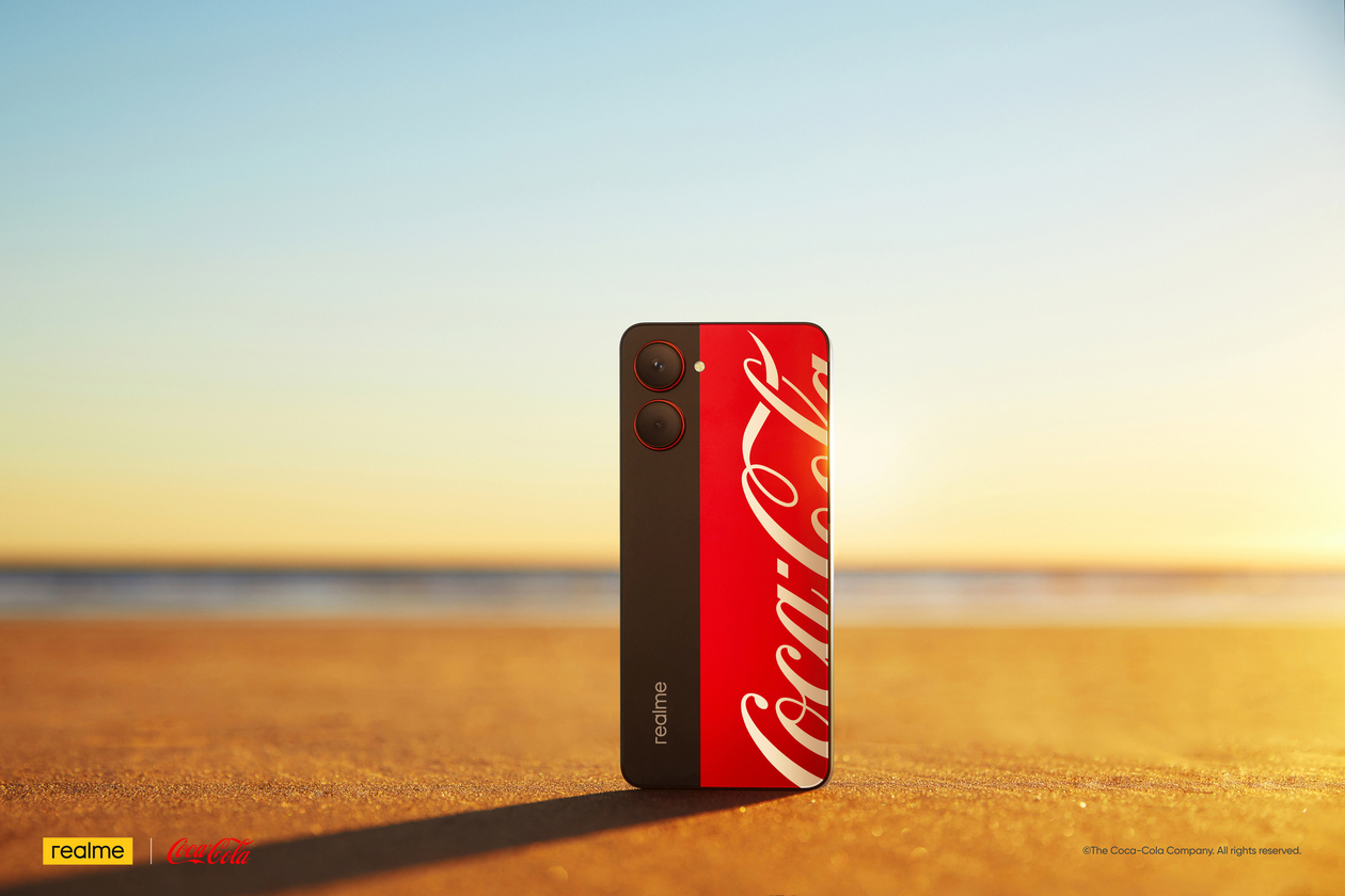 โดยสมาร์ตโฟนรุ่นพิเศษนี้มาพร้อมฝาหลังดีไซน์สุดเท่ด้วยสีแดงตัดสีดำที่เป็นคู่สีซิกเนเจอร์ของแบรนด์โค้ก พร้อมดึงดูดทุกสายตาด้วยโลโก้ Coca-Cola สุดคลาสสิกสีเงินในแถบสีแดงสด ชูสปิริตของโค้กที่เห็นแล้วนึกถึงความสดชื่นและสนุกซ่าถึงใจ นอกจากนี้ โลโก้โค้กแบบครอปตัวหนังสือยังชวนให้รู้สึกถึงความโมเดิร์นที่สดใหม่น่าตื่นเต้น วัสดุยังคงความพรีเมียมในสไตล์ “เรียลมี” ด้วยอะลูมิเนียมขัดเงาสะท้อนแสง ให้ลุคหรูหราแต่ยังคงกันรอยขีดข่วนและรอยนิ้วมือได้เป็นอย่างดี