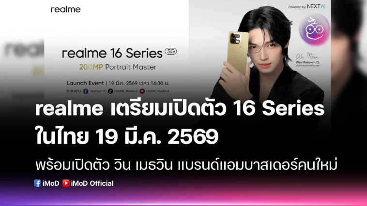 วินในทุกช็อต realme เตรียมเปิดตัว realme 16 Pro Series 5G ในไทย ชู Periscope 200MP หนึ่งเดียวในเซกเมนต์ พร้อมเปิดตัว วิน เมธวิน แบรนด์แอมบาสเดอร์คนใหม่พร้อมกันทั่วประเทศ 19 มีนาคม 2569