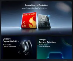 หน้าจอ LTPO AMOLED ขนาด 6.79 นิ้ว (QHD+ 144Hz) นอกจากนี้ยังเป็น Realme ตัวแรกที่มาพร้อมระบบกล้องที่ปรับจูนโดย Ricoh ซึ่งมีกล้องหลัก 50MP, กล้อง periscope 200MP ซูมออปติคอล 3 เท่า และเลนส์ ultrawide 50MP