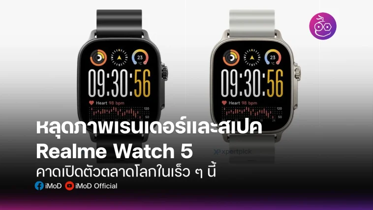 Realme Watch 5 มีการคาดการณ์ว่าจะมาพร้อมหน้าจอรูปสี่เหลี่ยม AMOLED ขนาด 1.97 นิ้ว ความละเอียด 390×450 และความสว่างสูงสุด 600-nit