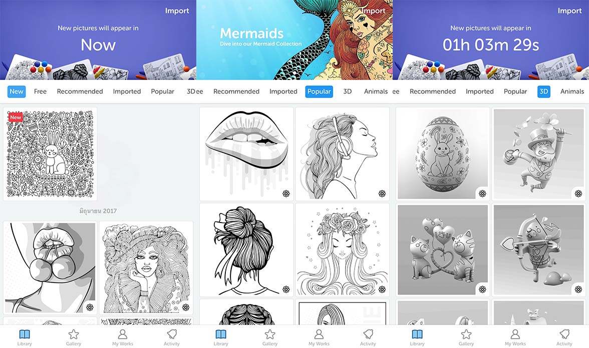 แอปสมุดระบายสีที่มีภาพสวยกว่า 1,000 ภาพ ให้เลือกระบาย พร้อมอัปเดตภาพใหม่ทุกวัน ทั้งภาพ Mandalas, Animals, Bouquets, Ornates, Lowpolys, Mortes และอื่น ๆ อีกมากมาย หรือแม้กระทั่งภาพ 3D ก็ยังมีให้ระบาย ช่วยผ่อนคลายและปลุกความคิดสร้างสรรค์ในตัวเราได้เป็นอย่างดี