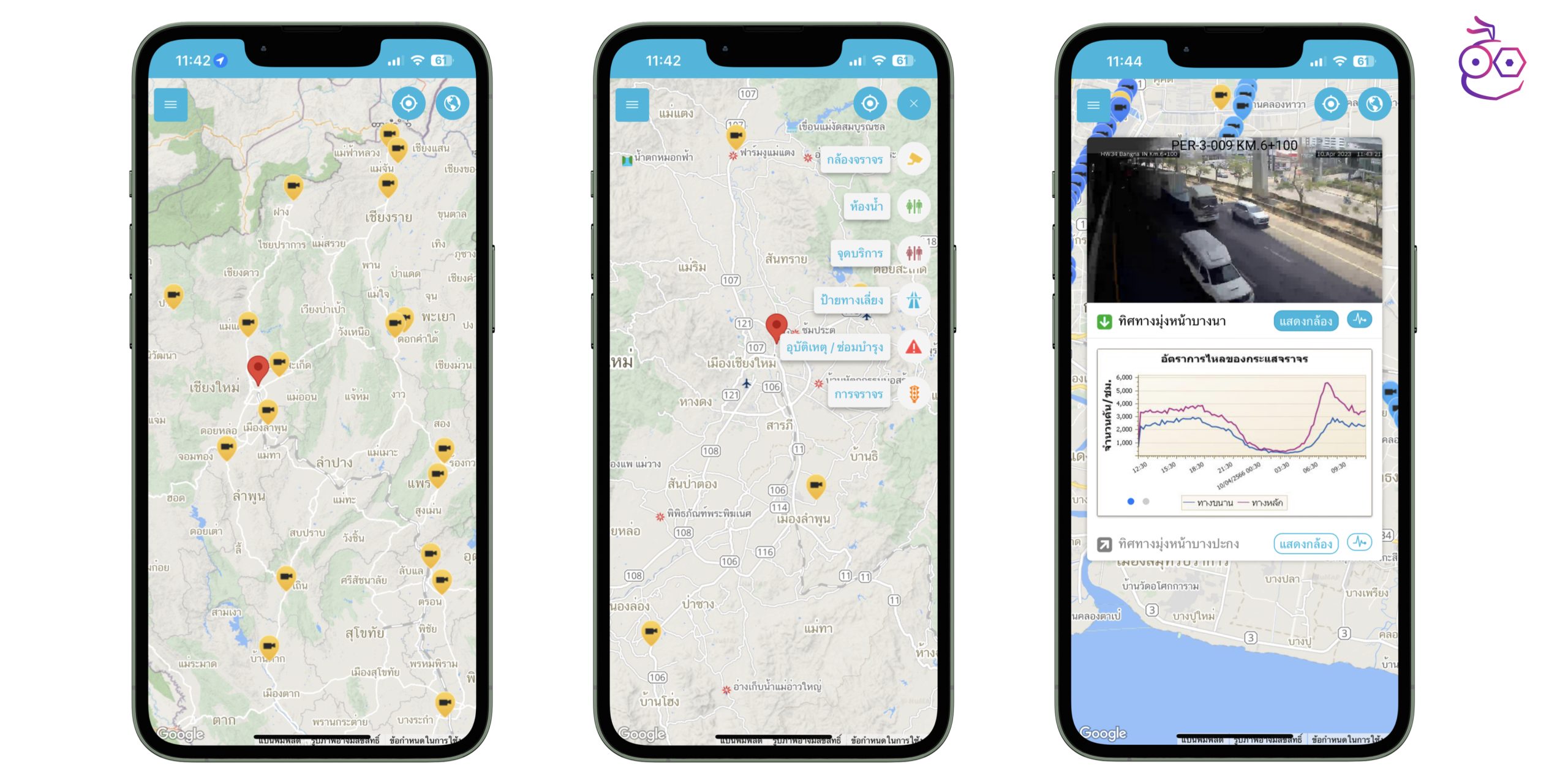 หนึ่งในแอปที่น่าสนใจ เพราะเราสามารถดูความหนาแน่นของการจราจรได้แบบ Realtime กันเลยทีเดียว เพียงแค่กดสัญลักษณ์กล้อง ช่วยให้เราสามารถวางแผนการเดินทางได้เป็นอย่างดี (ในแอปมีบอกรายละเอียด จำนวนความหนาแน่นของการจราจรของทางขนาน และ ทางหลักด้วย)
