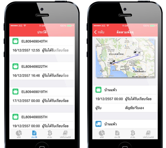 - แสดงแผนที่และการเดินทางของพัสดุ