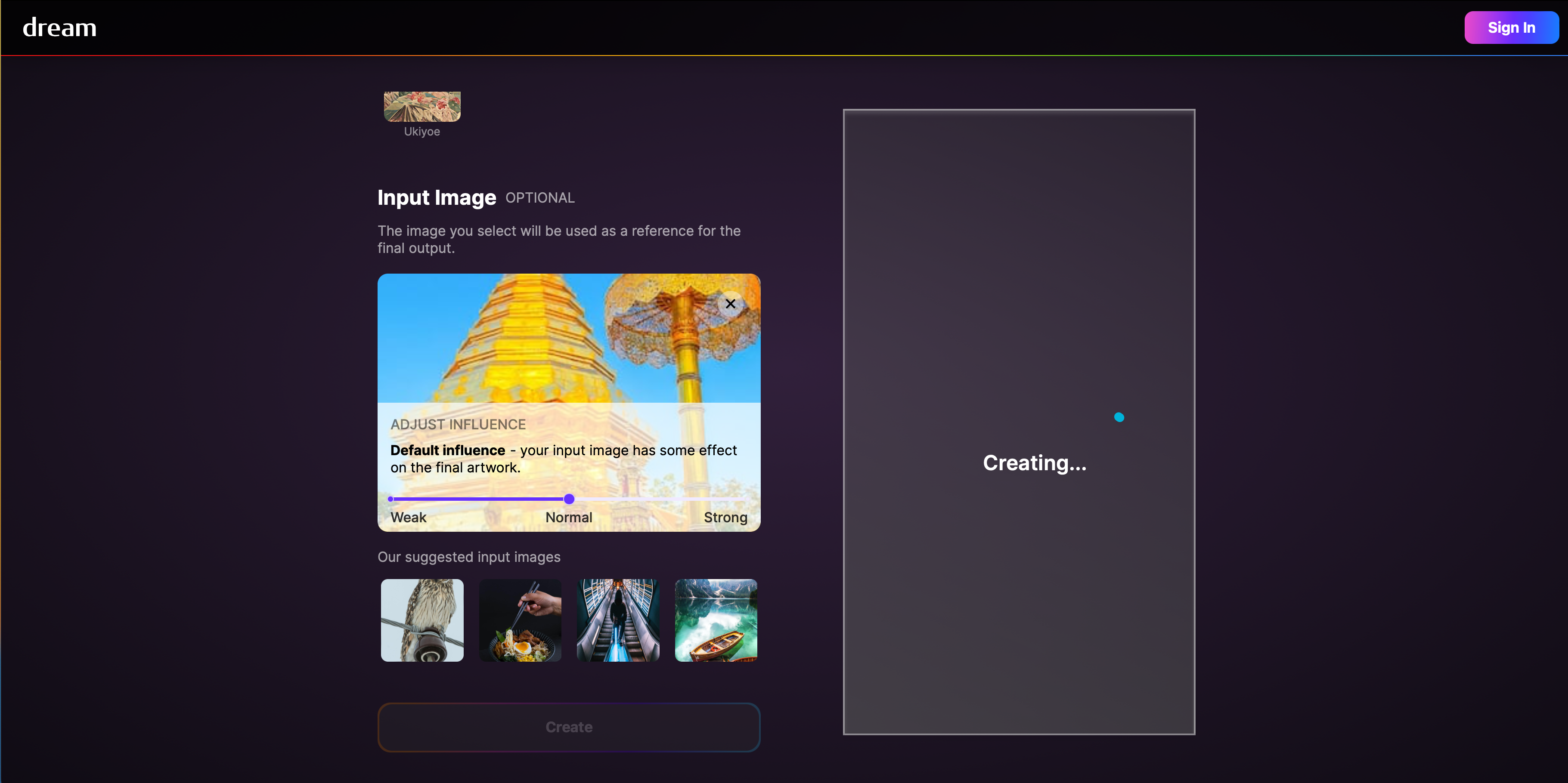 เว็บไซต์สร้างภาพด้วย Ai โดยสามารถใส่ Keyword และ ประโยคได้สูงสุด 100 ตัวอักษร ซึ่งมี Art Style ให้เราเลือกรูปภาพที่ต้องการ สามารถเพิ่มภาพอ้างอิง และนำไป Remix เป็น NFT ได้