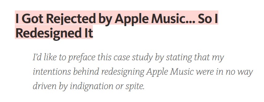 ถึงแม้ น.ศ. คนหนึ่งจะถูก Apple ปฏิเสธเข้าร่วมโครงการฝึกงานตำแหน่งนักออกแบบ (Graphic Design) ของแอป Apple Music แต่ น.ศ. คนนั้นก็ได้ทำการ Redesign แอป Apple Music มาให้ชมกัน