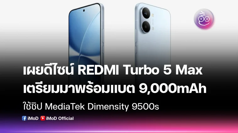 Redmi ได้เปิดเผยรายละเอียดใหม่และดีไซน์อย่างเป็นทางการของ Turbo 5 Max โดยจะมาพร้อมแบตเตอรี่ 9,000mAh และใช้ชิป MediaTek Dimensity 9500s SoC รวมถึงมีดีไซน์เฟรมโลหะ CNC และฝาหลังไฟเบอร์กลาส